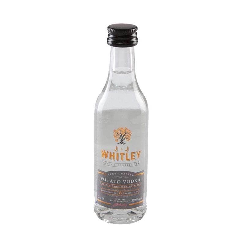 JJ Whitley Potato Vodka Miniatures JJ Whitley Potato Vodka miniature is a smooth and creamy vodka made from potatoes. The taste has been characterised as complex with undeniable earthiness from the first sniff to the last sip. The palate is made even more gratifyingly complex with the fresh hints of white grape and mint, and finishes with the spiciness of black peppers. It leaves the palate with the crispiness, slightly sour taste of green apples which lingers on together with the warming effect of vodka. Made with 100% natural potatoes, JJ Whitley vodka miniatures are also recommended for creating classic vodka-based cocktails and are specially suggested by its makers, Halewood International, to add a superb taste to an, otherwise, usual serving of martini. This potato vodka also makes great presents for the holidays, birthdays and what not. Other potato vodka drinks you might want to try for your own personal enjoyment or, for toasting with friends are bloody mary, pink lemonade slushies, and white Russian. Curious to try how a JJ Whitley Potato Vodka 5cl tastes? Go for a 5cl small bottle for sampling. Simply add to regular juices, soda or tonic. Add crushed ice to chilled vodka and enjoy best with ginger ale, grapefruit juice or lemonade.