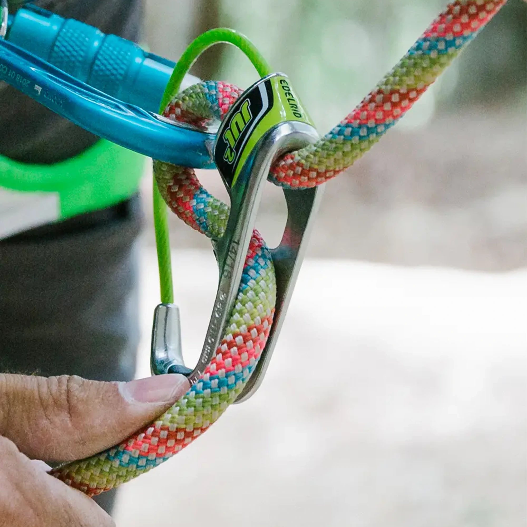 - Rope can be paid out faster to a leader by holding device in the ‘open’ position with the thumb