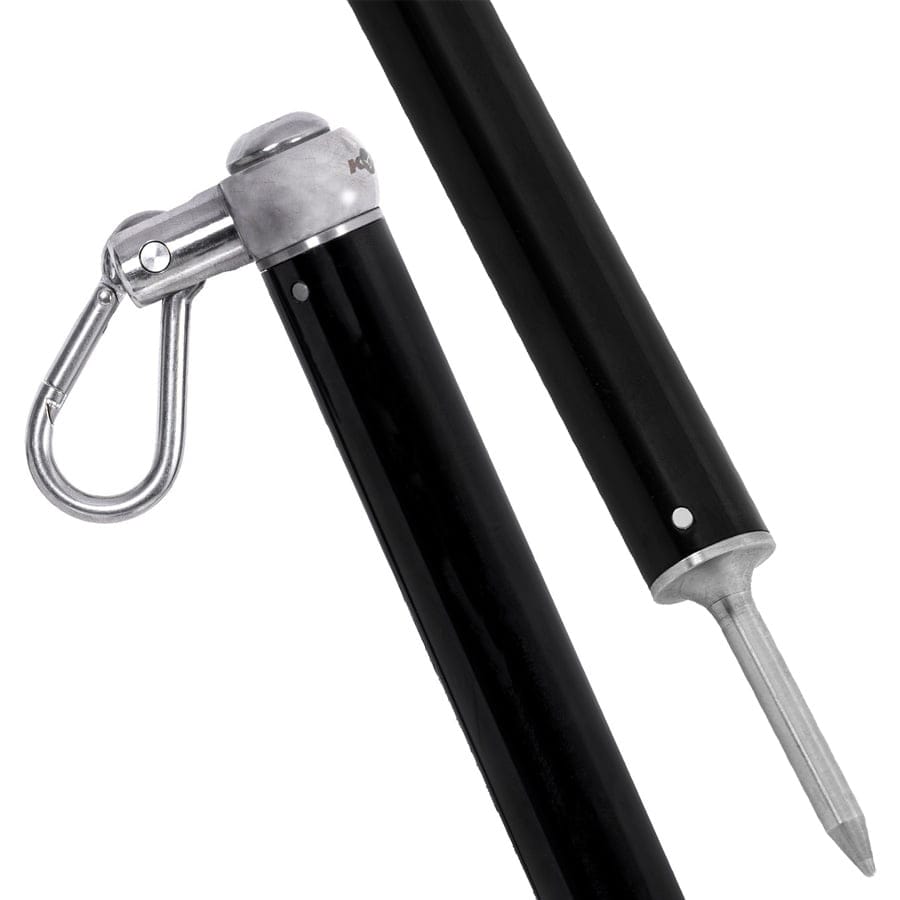 The Weigh Staff is equipped with a rotating stainless-steel carabiner for quick and hassle-free weighing. Additionally, the stainless-steel spiked base ensures the staff is anchored securely into the ground providing a solid foundation for accurate reading.