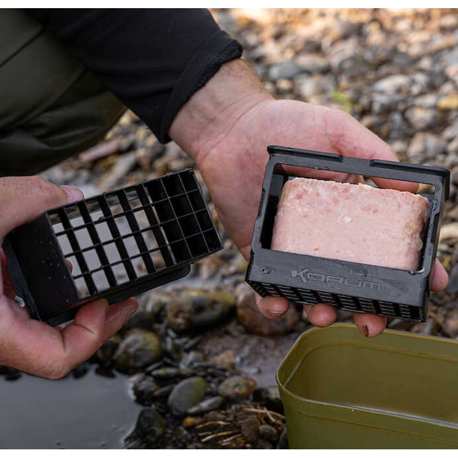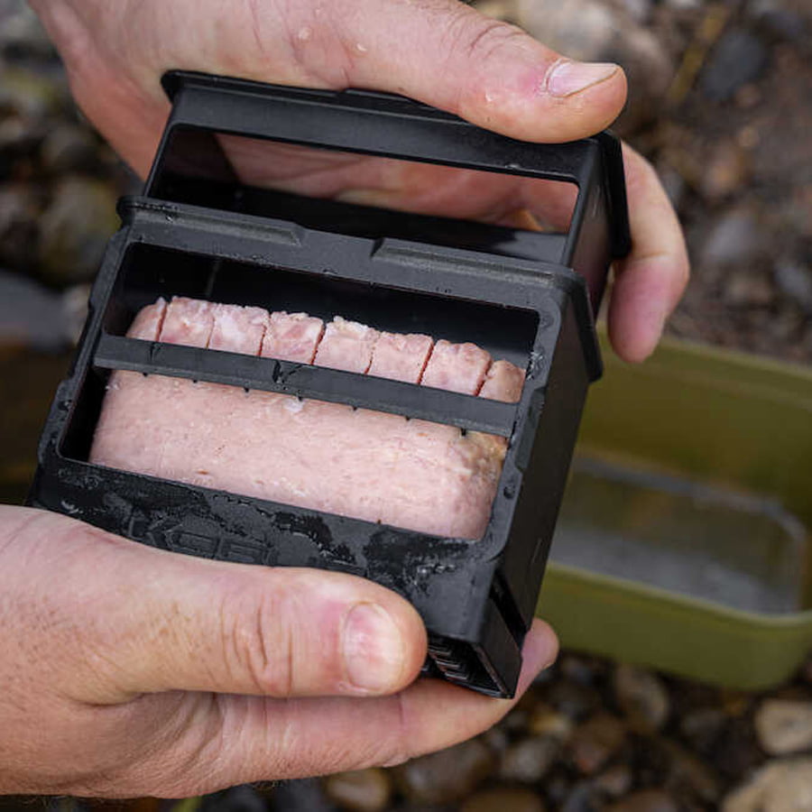 The Meat Cuber offers a simple, compact solution for cutting luncheon meat to the perfect size. The two-part process cuts perfectly neat cubes that match the size of the Korum Meat Stoppas (product code 24632) perfectly.