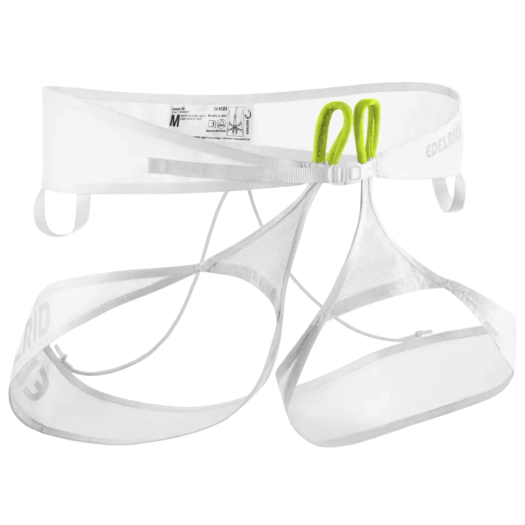 The lightest climbing harness on the market by far. With the LOOPO AIR, Edelrids developers demonstrate what is possible in terms of weight reduction and ultra-small pack sizes. The fully certified harness with two gear loops is as light as a feather, weighing just 49 g in size M, and can be folded to the size of a fist. The LightFrame design made of Dyneema® with two circumferential edge straps provides the necessary secure fit. Hybrid laminate made of polyester and Dyneema® as a carrier material enables even force distribution and a low weight. Ideal for ski touring and high mountain tours or as a sender harness for competitions, speed, or 9c+.