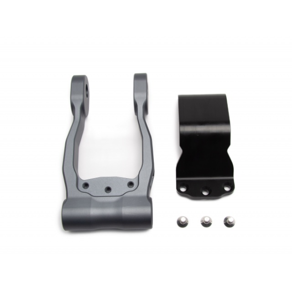 Robust 6mm thick HDPE integrated linkage guard to protect the lower shock mount (removable with 3x M6 flush mounted fasteners). The only offering with a built-in plastic guard. It doesn’t transfer impact like other rigid guards and won’t snag like aluminum will. It includes a return hook that won’t snag or break when backing up over an obstacle.