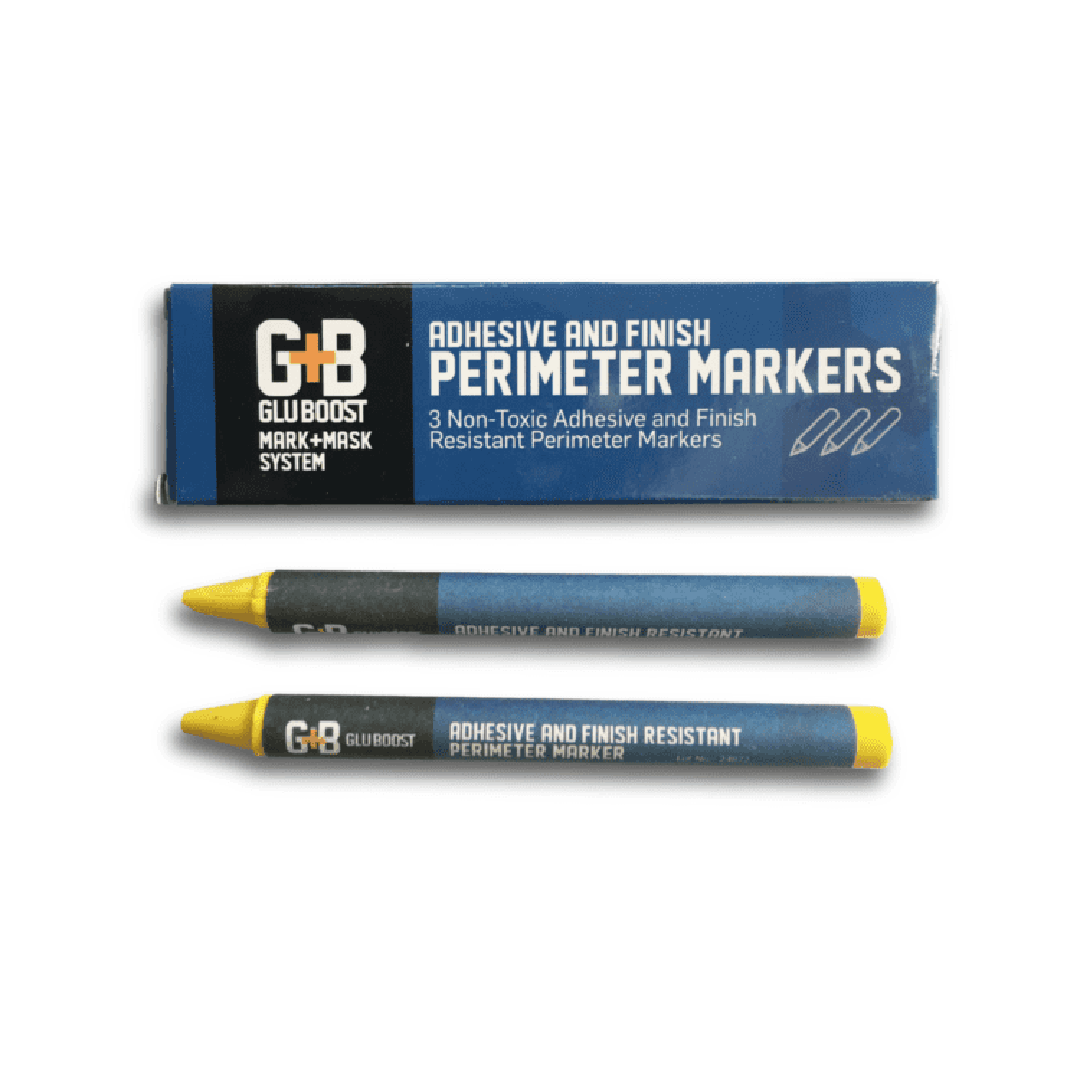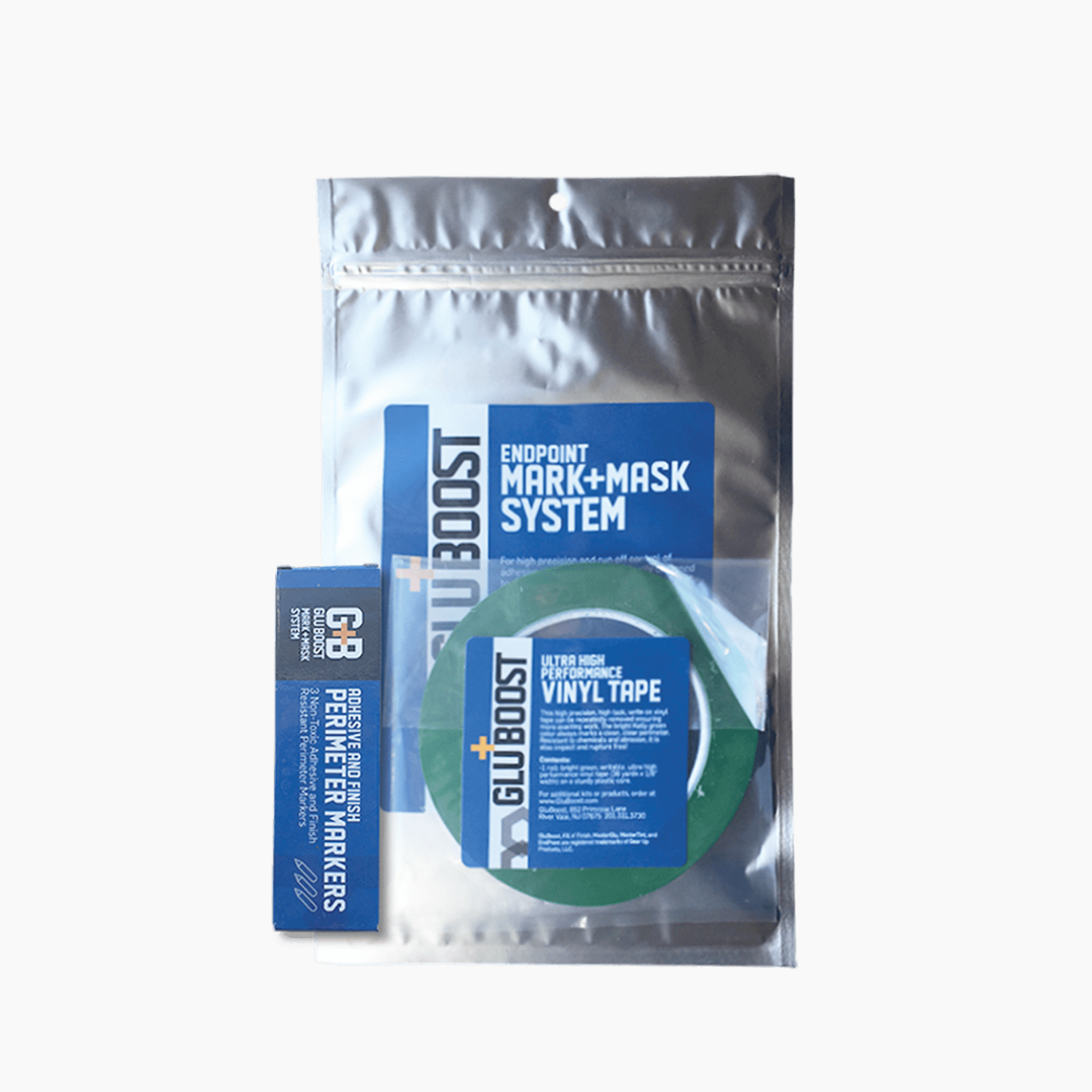 Made for perimeter controlled CA or finish application without run off, our EndPoint Mark + Mask System creates spot on borderlines for a secure boundary and complete runoff control of adhesives and finishes within any shaped area… both straight and curved! Designed specifically for use with MasterGlu adhesives and Fill n’ Finish formulas, GluBoost EndPoint Mark + Mask System eliminates adhesive and finish run off forever!