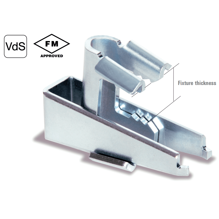This beam clamp is made from high-quality steel and meets both VdS and FM approval standards. For environments where corrosion is a concern, a Stainless Steel (A4) version is available. If you need additional sizes, explore our full beam clamp range here.