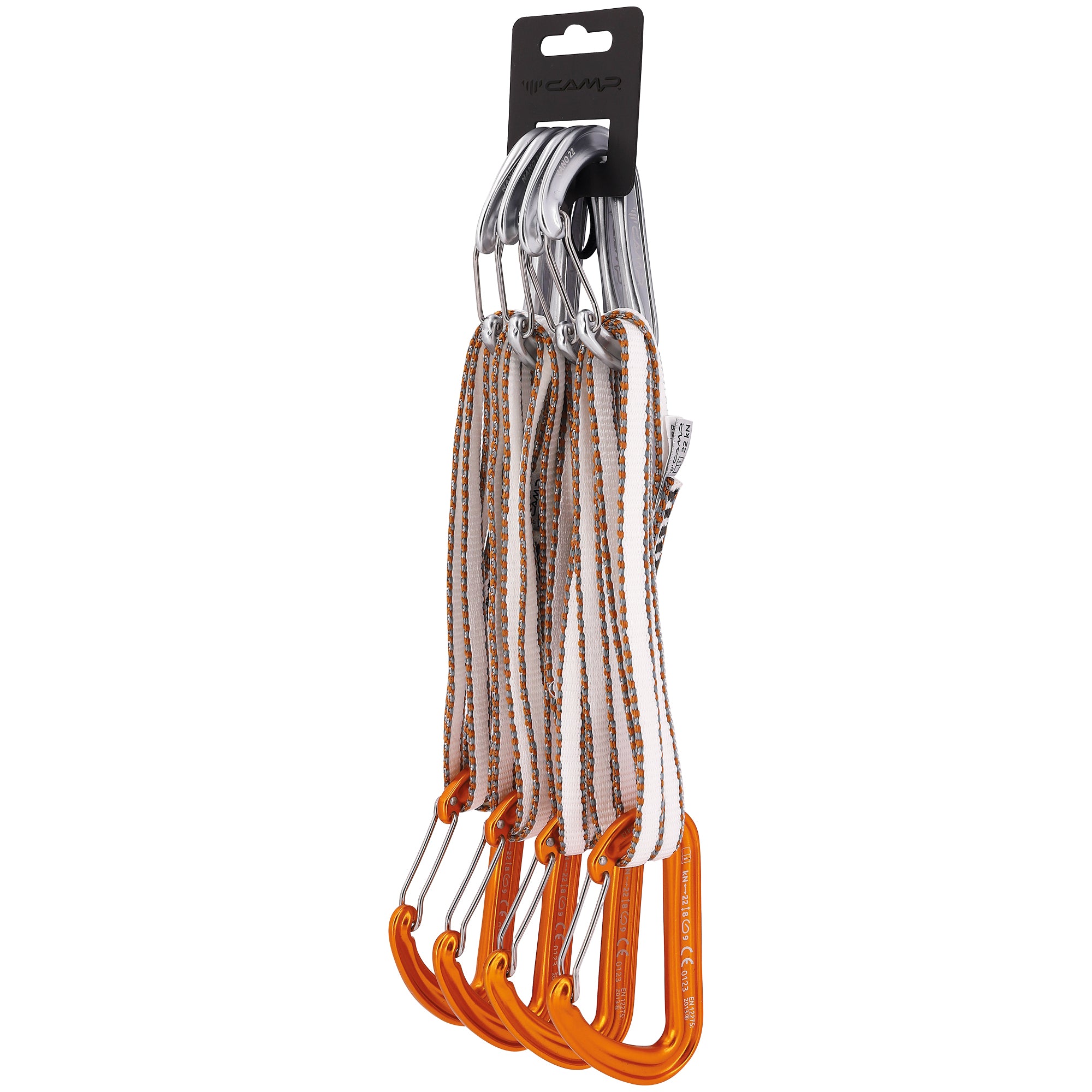 The Mach Express excels in each of these areas. The Nano 22 on the gear end situates perfectly on any kind of pro from wires to cam slings to bolt hangers and pitons. Their low profile also takes up less space on gear loops than traditional carabiners and they fish in and out of cracks, chain links and other tight spaces with ease. The Photon Wire is the lightest full-size carabiner on the market making it the optimal choice for the rope end. The 10 mm x 60 cm Dyneema® slings are light, strong and thin making them the perfect choice for long routes. The unique properties of Dyneema® also make them particularly well-suited for wet conditions common with alpine terrain.