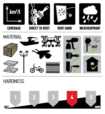 Coverage: depending on the object and method of application about 5-6 m2/l.