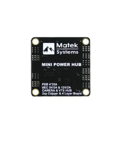 Matek’s mini power distribution board (PDB) has been engineered to provide the highest possible performance and reliability in a 36*36mm, 4 layered PCB. The power hub distributes power from a battery pack to 4 ESCs, as well as providing regulated 5 and 12 volt DC power outputs for powering electronics such as a flight controller, camera, servos, video transmitter, LEDs, etc. Both BECs are compatible with 2-6S LiPo. The 5V BEC is rated at 3amps continuous and the 12V BEC can provide 2 amps continuous. The board has dedicated connections for a FPV camera and a FPV video transmitter (VTX), with solder jumpers that let you select their output voltage (5/12v). So you can use a 5v camera with a 12v VTX, or a 12v camera with a 12v VTX. The board is a standard 36mm sized PDB, so you can stack it cleanly with the CC3D, Naze and most other board type flight controllers. If you require a smaller PDB, Matek’s micro PDB has all the functions of this PDB, except for the dedicated FPV connections.