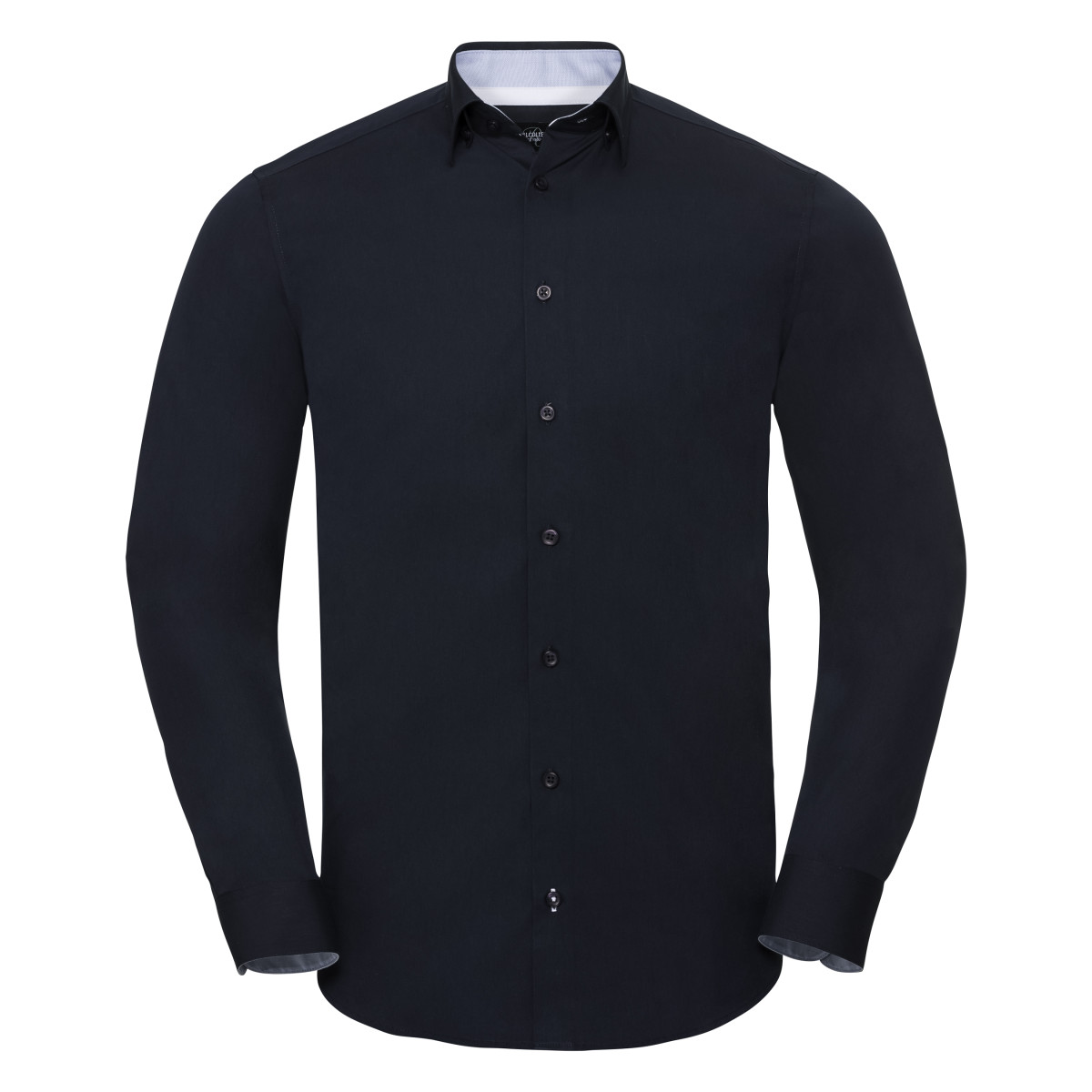 - Contrasting colors at cuff buttonhole and lowest buttonhole