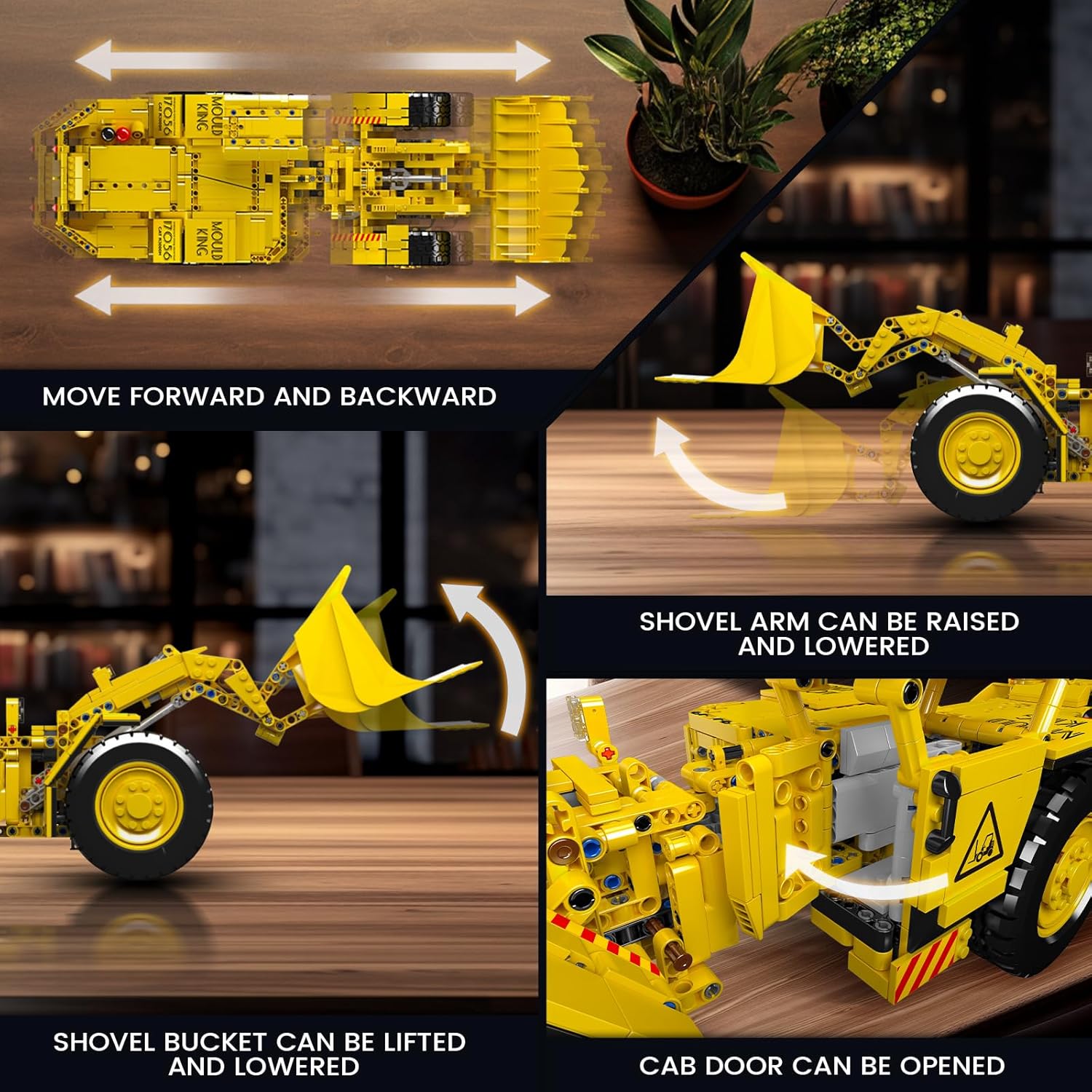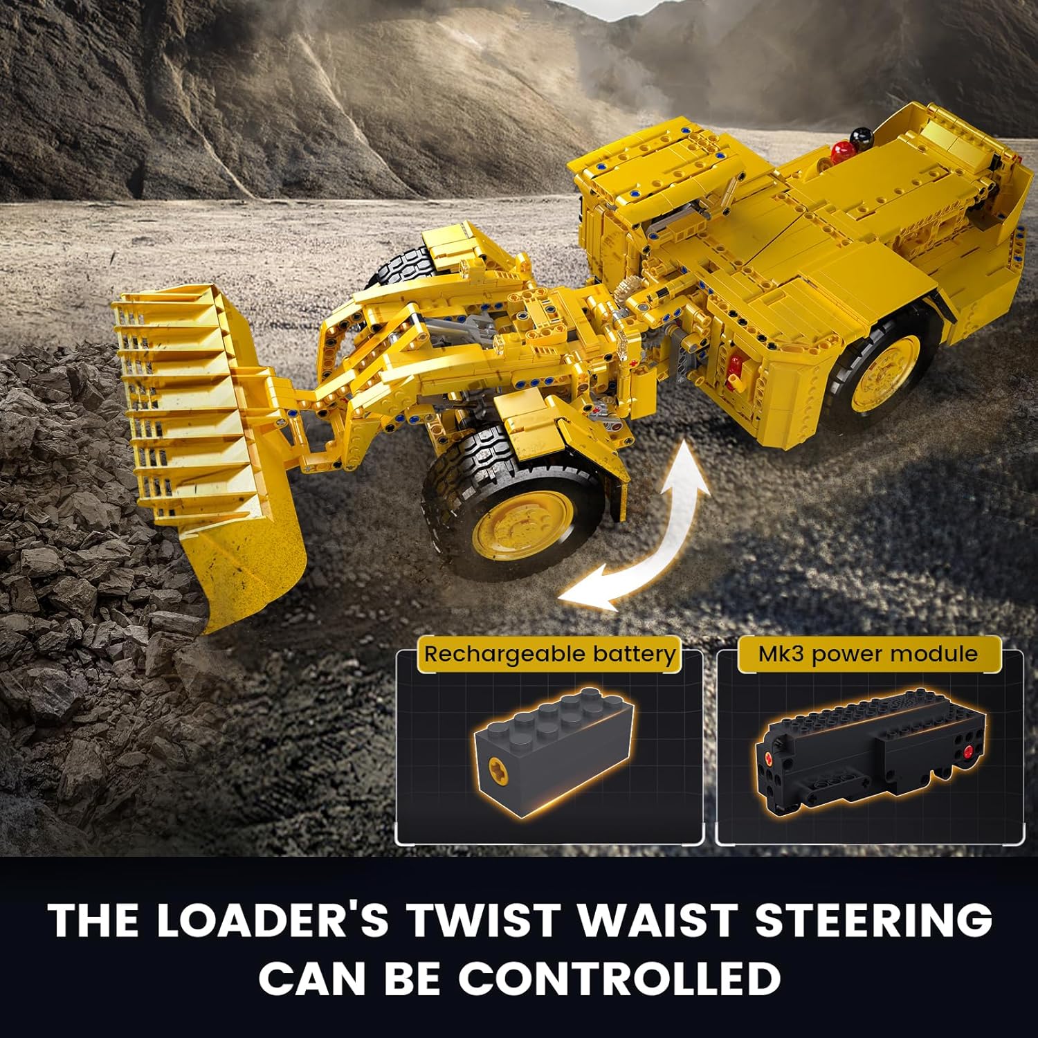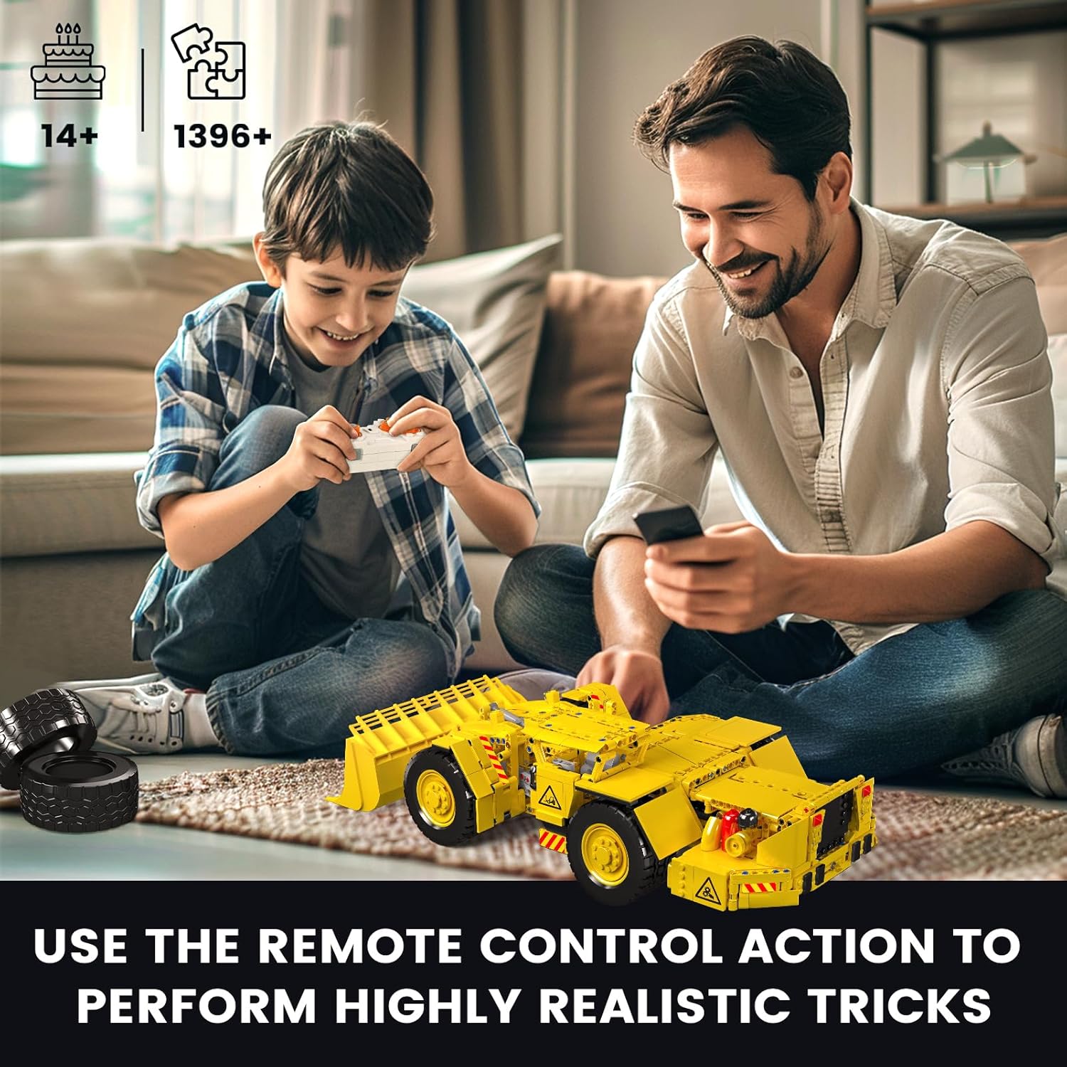 - RC Wheel Loader – You can control the crane building toy with your mobile phone, you just need to download the app and connect the truck via Bluetooth.