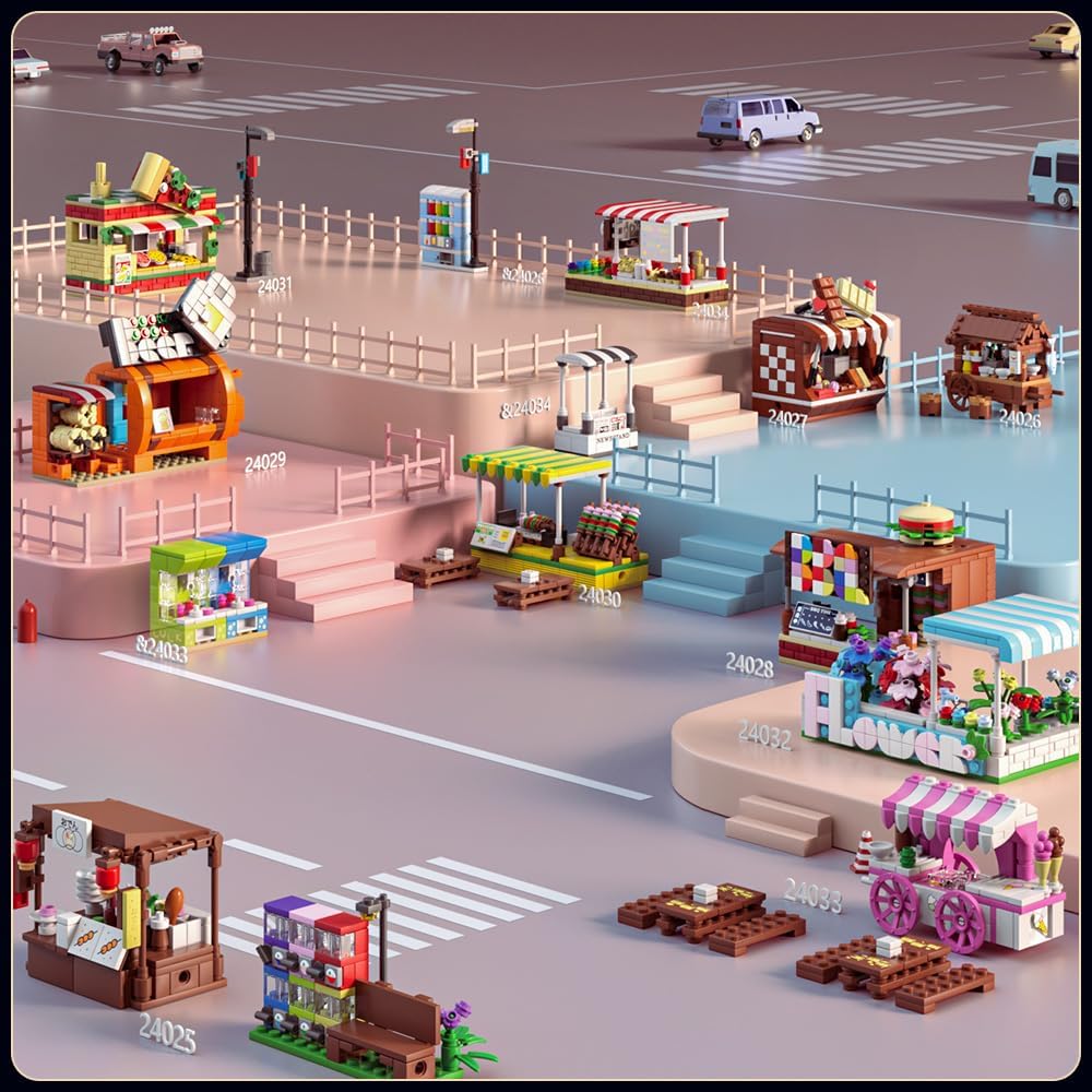 Mould King 24030 Skewer Stall, part of the MiniStall Series of Building Brick sets.