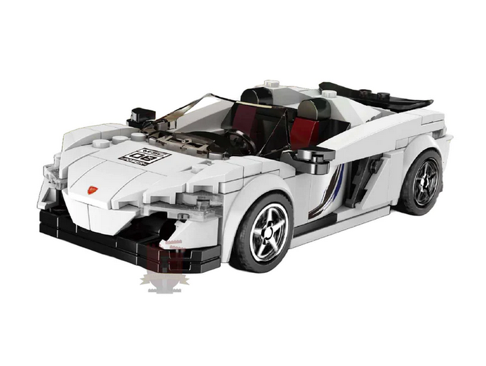 This Mould King® car model is created with 352 pieces and suit for ages 8 and up. The car model features a streamlined body and transparent windshield, exhaust-pipe, tail wing, opening doors, a steering wheel, and sport seats.