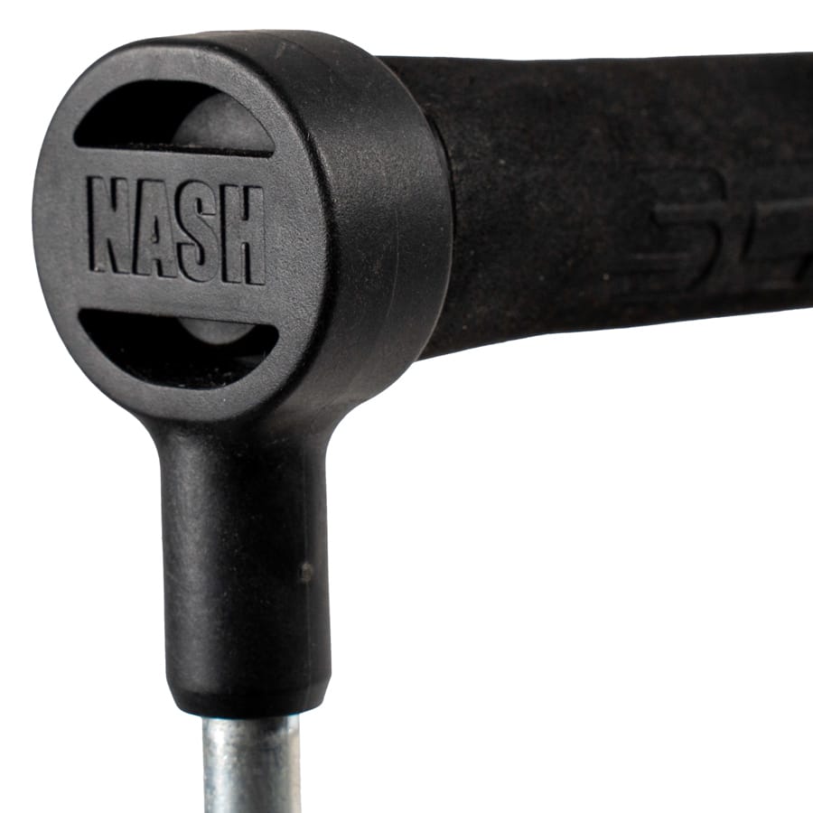 - Carbon pipe reel seats with engraved Nash logos and a flattened thumb grip