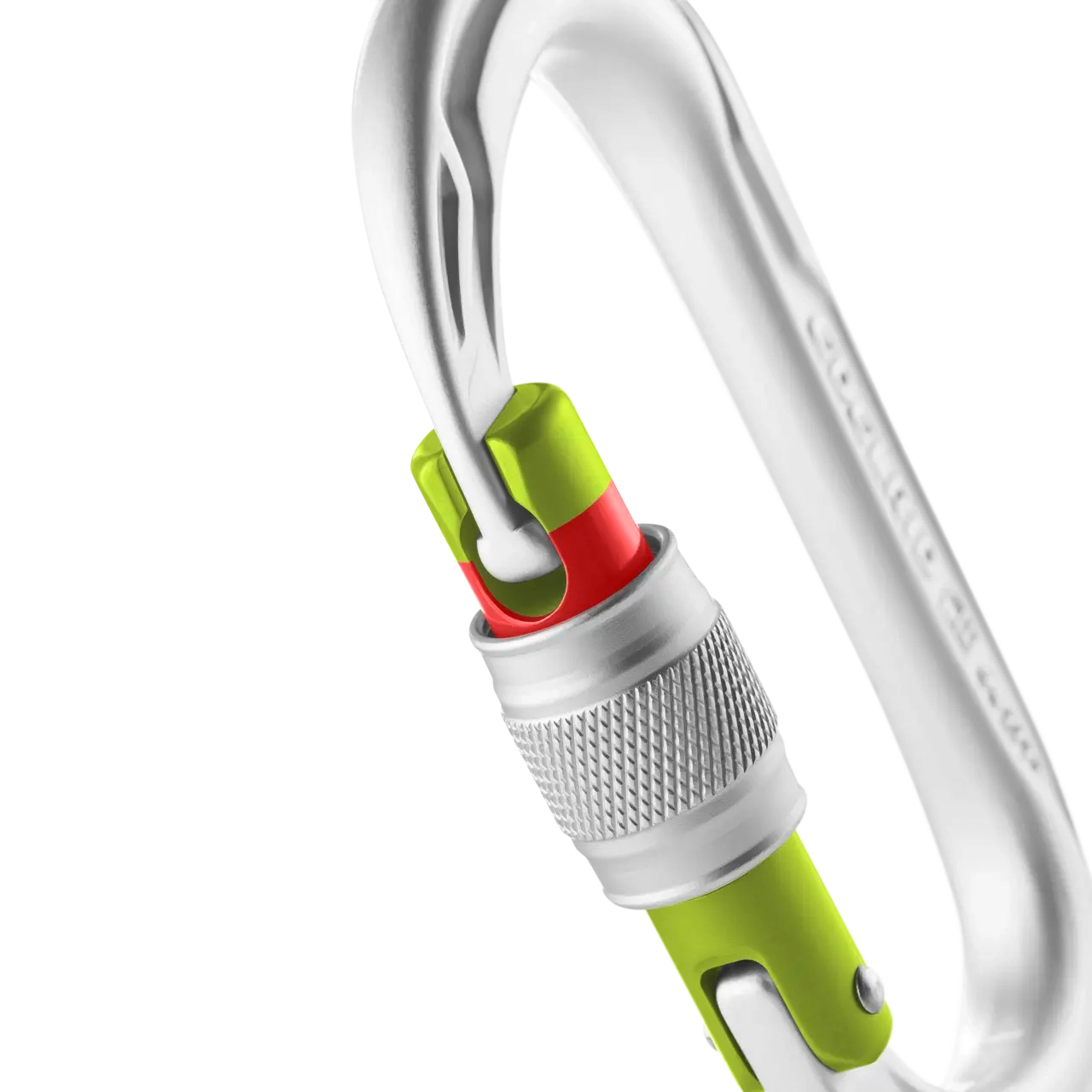 Oval carabiner with a very slim locking sleeve. Ideal for clipping rigging plates, pulleys, and rope clamps, as well as for positioning anchor points.
