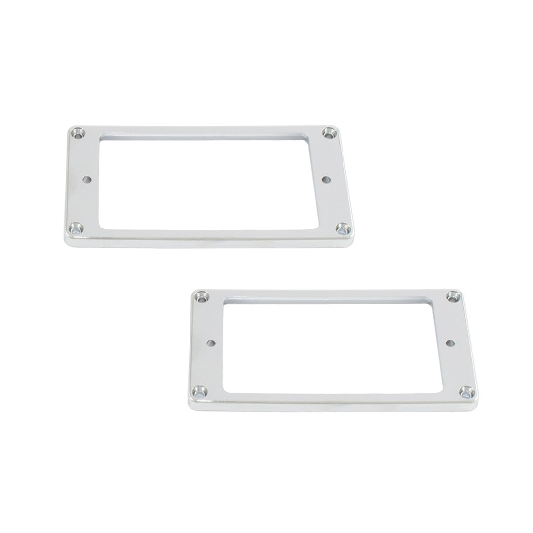 Set of two identical metal humbucking pickup rings with flat bottom and straight side. Allparts #PC-0741.