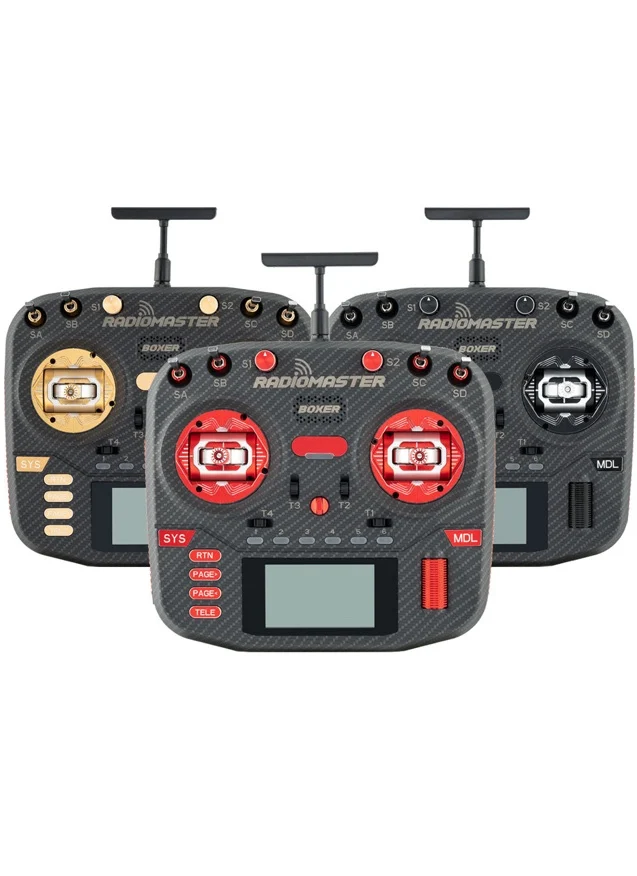 The RadioMaster Boxer Max improves an already stellar radio. This ultimate edition now comes with a carbon fibre pattern case and the AG01 metal hall gimbals. Other upgrades includes CNC Roller & Buttons, an adjustable CNC metal folding kickstand, upgraded leather grips and Radiomaster neck strap to provide a comfortable user experience. Enjoy the superior performance with the Boxer Max Radio!