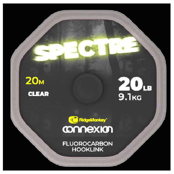 Ultra low visibility 100% fluorocarbon hooklink material. Nearly invisible when submerged, the high density Spectre Fluorocarbon will pin itself to the lakebed and is suitable for a wide range of applications. Originally developed as a hooklink material with medium flexibility, also perfect when used as a concealment leader when targeting particularly wary fish. 15lb/6.8kg breaking strain. 20 metres. Clear.