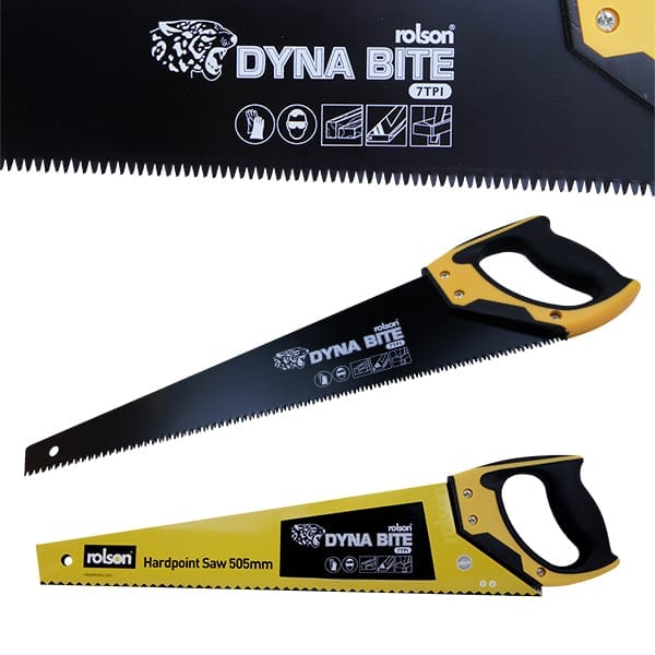 Our dynabite 505mm crosscut saw has 7TPI and is laquered for a superior cutting action. It has a handle securely fixed with 3 extra strong bolts, a built in 45 and 90degree angle. Supplied with a hanging hole and a soft grip handle.