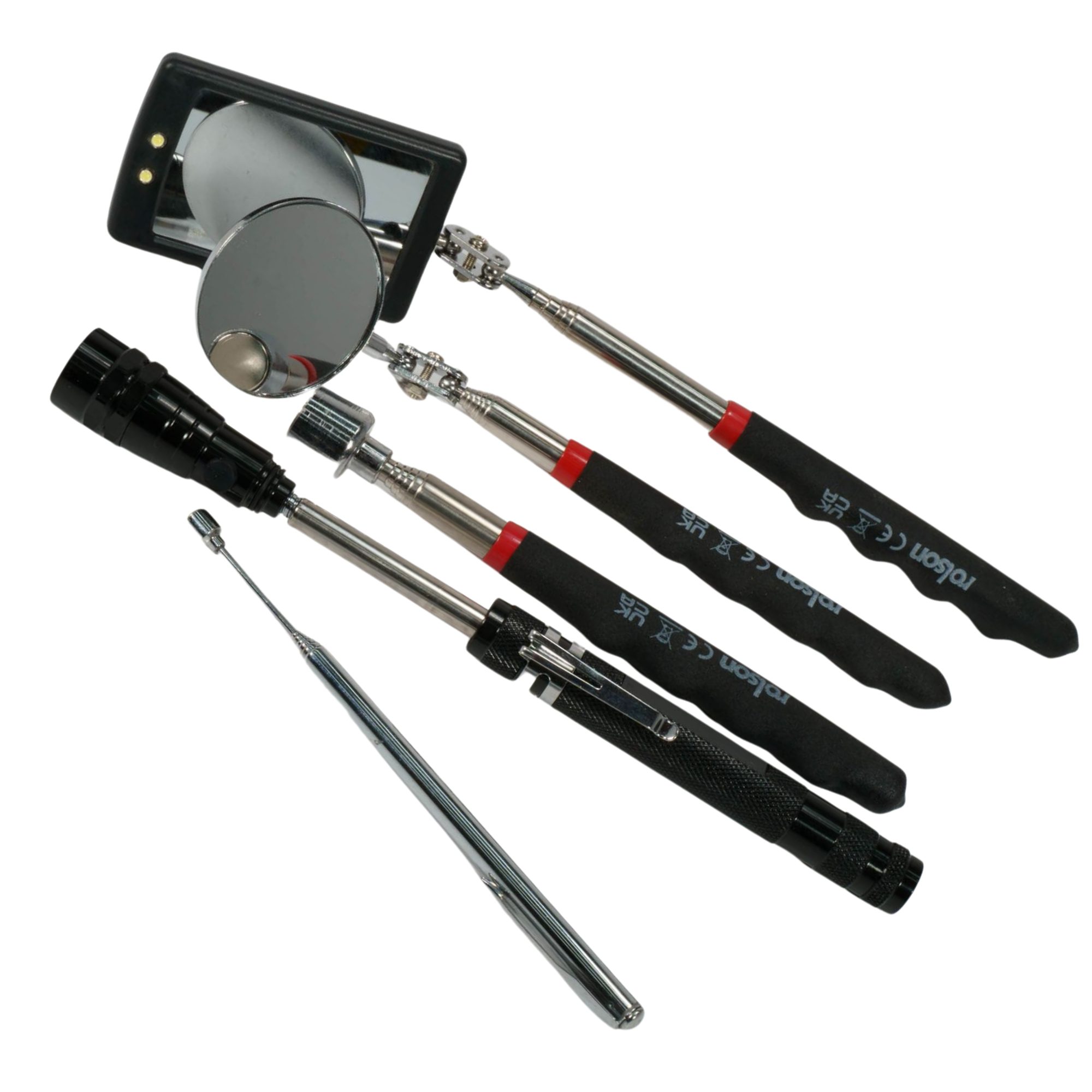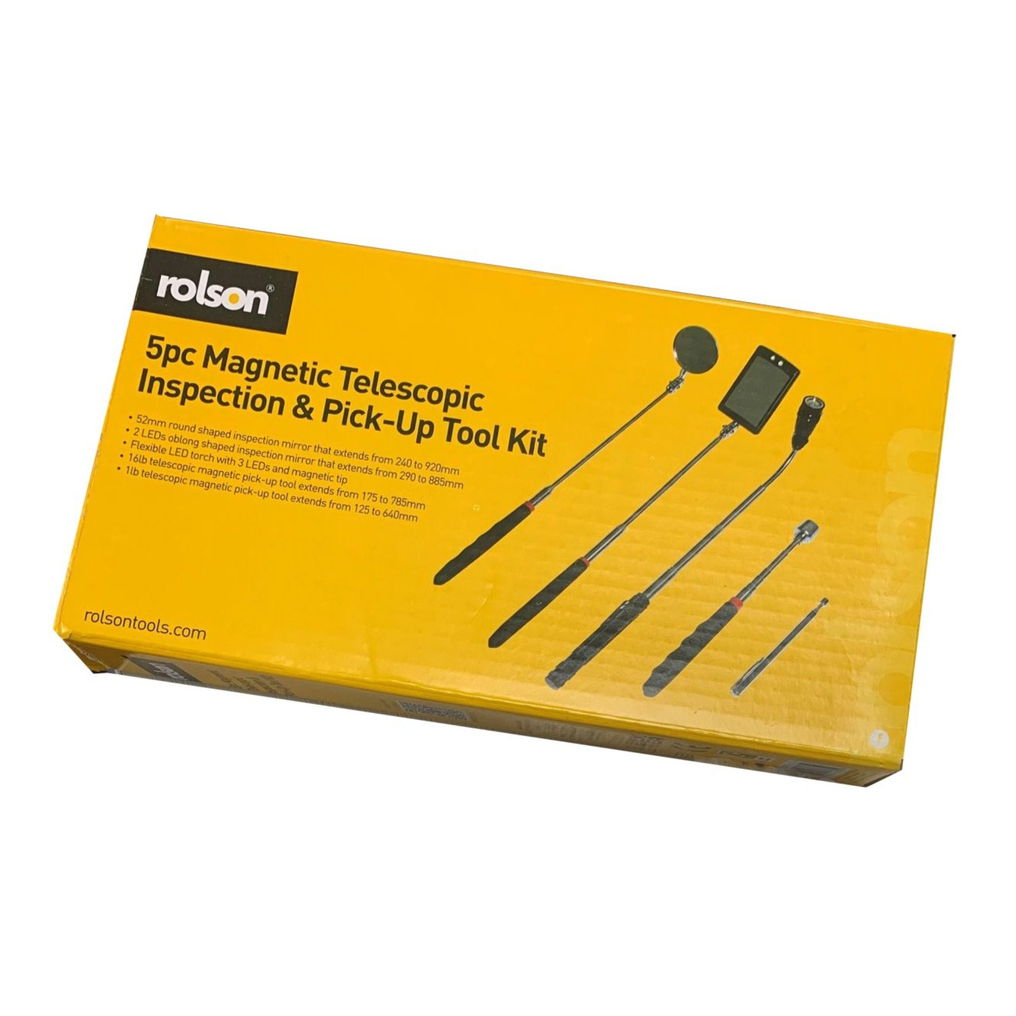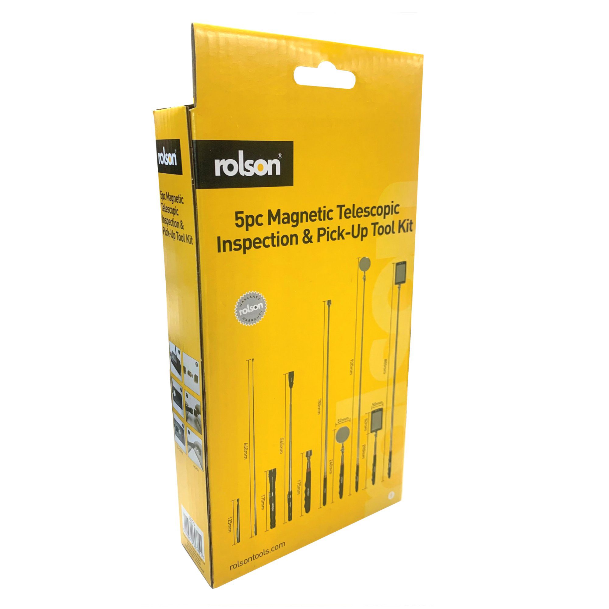 Rolson Inspection and Magnetic Pick Up Tools Set 5 Piece – inc 2 types of mirrors-lights and pickups 60375