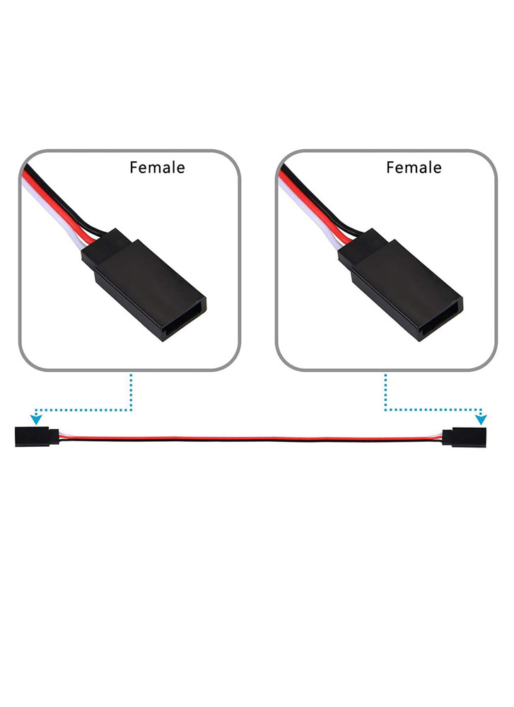 Servo lead wire extension with Female to Female plugs. Fits all Hitec, Futaba, JR, Multiplex, and Airtronics Z servos. High quality silicone wire and connectors used. Choice of lengths available: 10cm & 15cm.