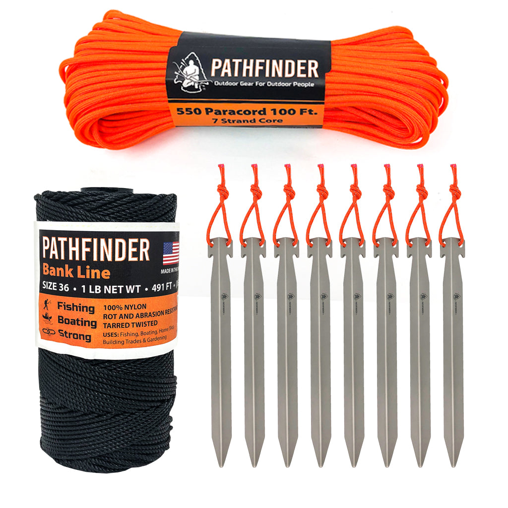 Embark on your next outdoor adventure with the Pathfinder Shelter Accessory Kit. This essential kit comes equipped with all the necessary accessories for creating the perfect shelter, such as paracord, titanium stakes, and #36 Bank Line. Prepare for an unforgettable camping experience with this versatile and must-have kit.