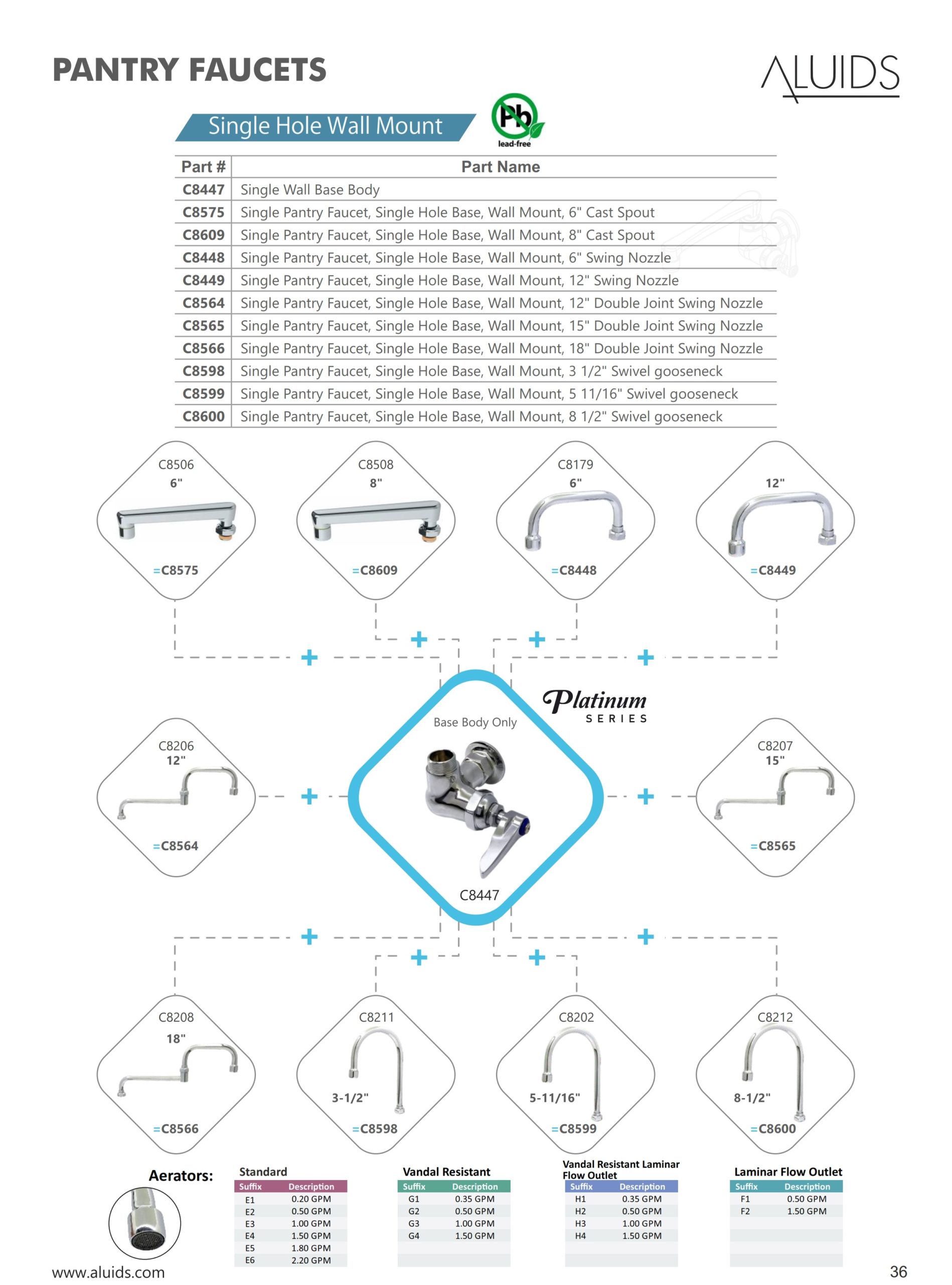 | C8600 | Single Pantry Faucet, Single Hole Base, Wall Mount, 8 1/2″ Swivel gooseneck |