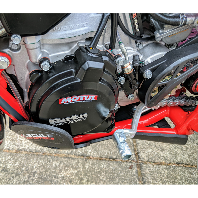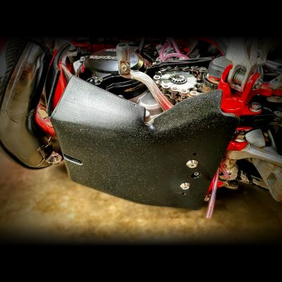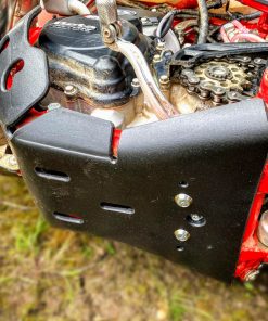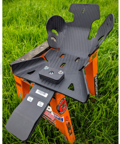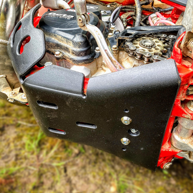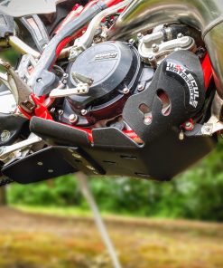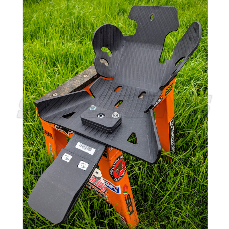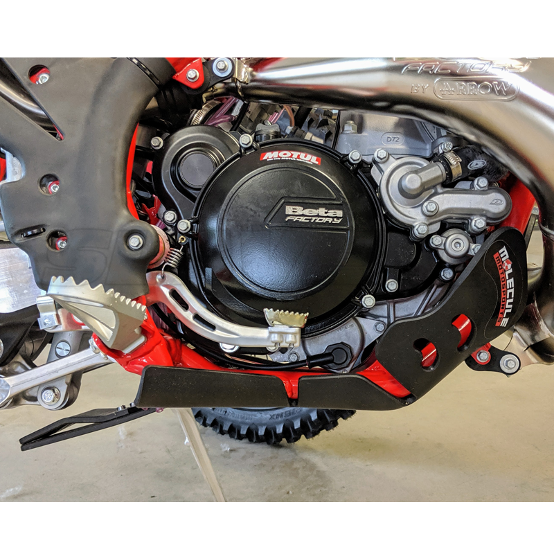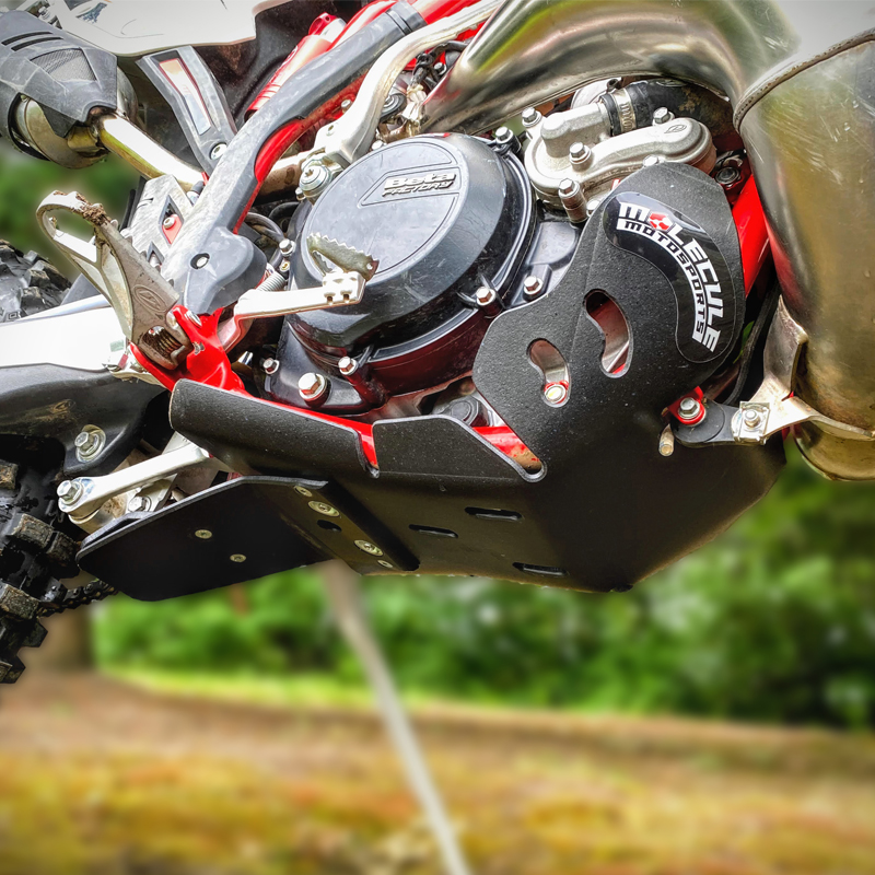The all new Molecule Motosports Skid Plates with optional linkage guard are the ultimate protection for your vulnerable engine cases and covers, frame and suspension linkage. Constructed out of 6.35mm thick thermo-formed UHMW polyethylene these skid plates are stronger and more wear resistant than HDPE skid plates. They are formed tight to the bike to prevent snags and specially designed to keep the shape over time. The optional/replaceable linkage guard allows you to replace the worn out part without having to replace the entire skid plate. It also features a triangle shaped linkage spring to extend the life of the guard and help dampen impacts.