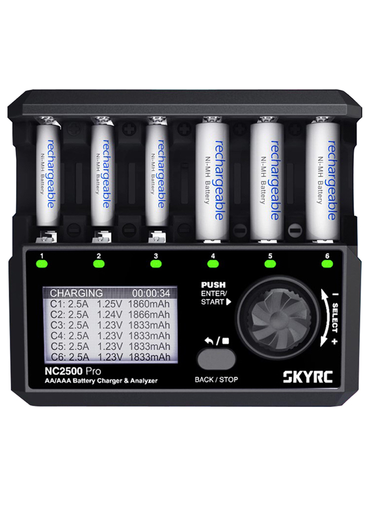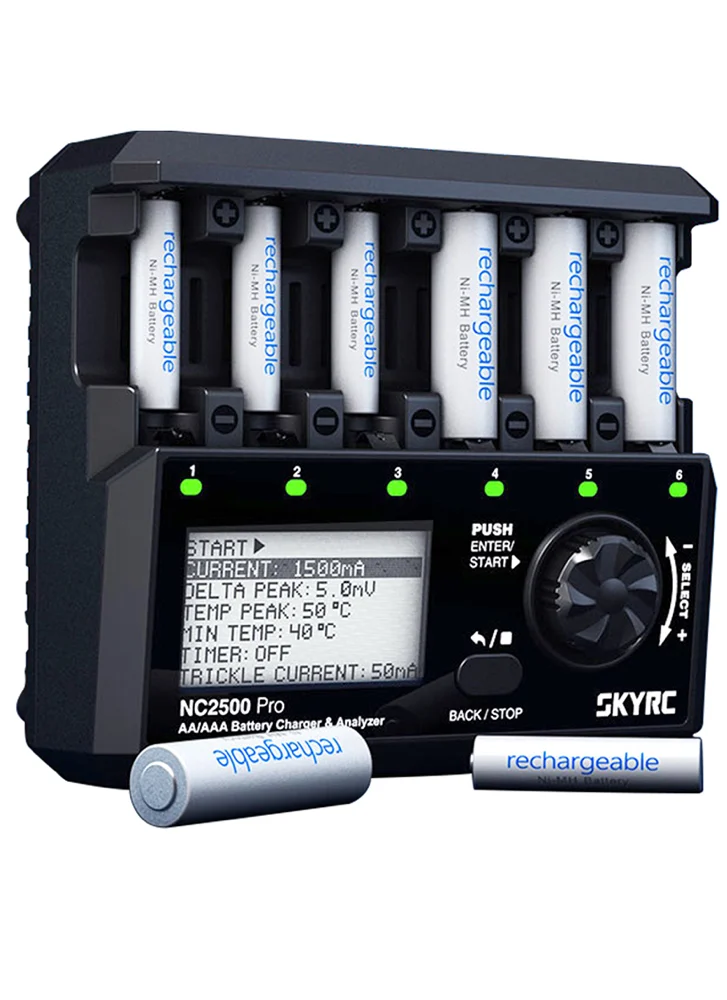 NC2500 Pro is the successor of the NC2500. Now boasting more power and another two charge slots, making six in total. As before, this charger suits NiMH / NiCd batteries, in sizes AA or AAA. Its six charge bays are fully independent, so batteries can be charged differently depending on their capacity. Thanks to the brand new step charging technology, different currents can also be set for the charge cycle, depending on the progress. Also the charger makes use of an innovative algorithm, FlexiPulse to detect internal resistance. Once high internal resistance is detected, the charging current is automatically reduced to reduce stress on the battery and ensure longevity.