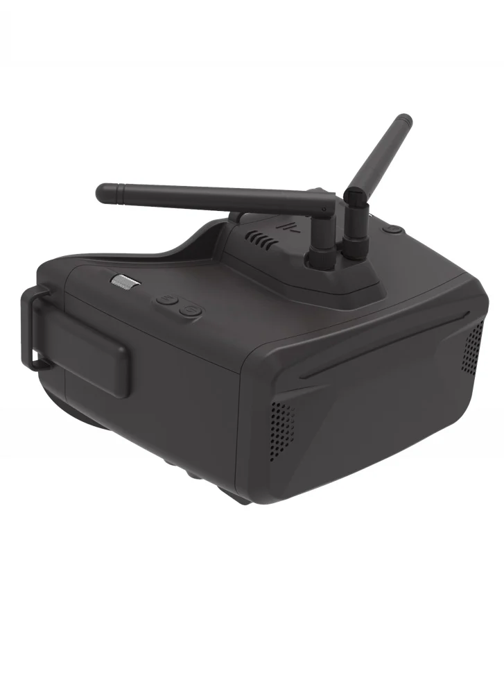 There’s a new ‘box style’ FPV headset on the scene from Skyzone. It’s called the Cobra and it’s available in two model versions. The Cobra SD has a 4:3 LCD display with a 800x480px resolution and the higher spec Cobra X has a 1280x720px display, which supports both 16:9 (native) and 4:3 aspect ratios. Both versions have a large 50° FOV (field of view), which is bigger than most high-end slimline goggles. The Cobra SD has a diversity receiver while the Cobra X uses the upgraded SteadyView receiver. The other difference between the two is that the X’s DVR records at a higher quality 60FPS vs 30FPS.