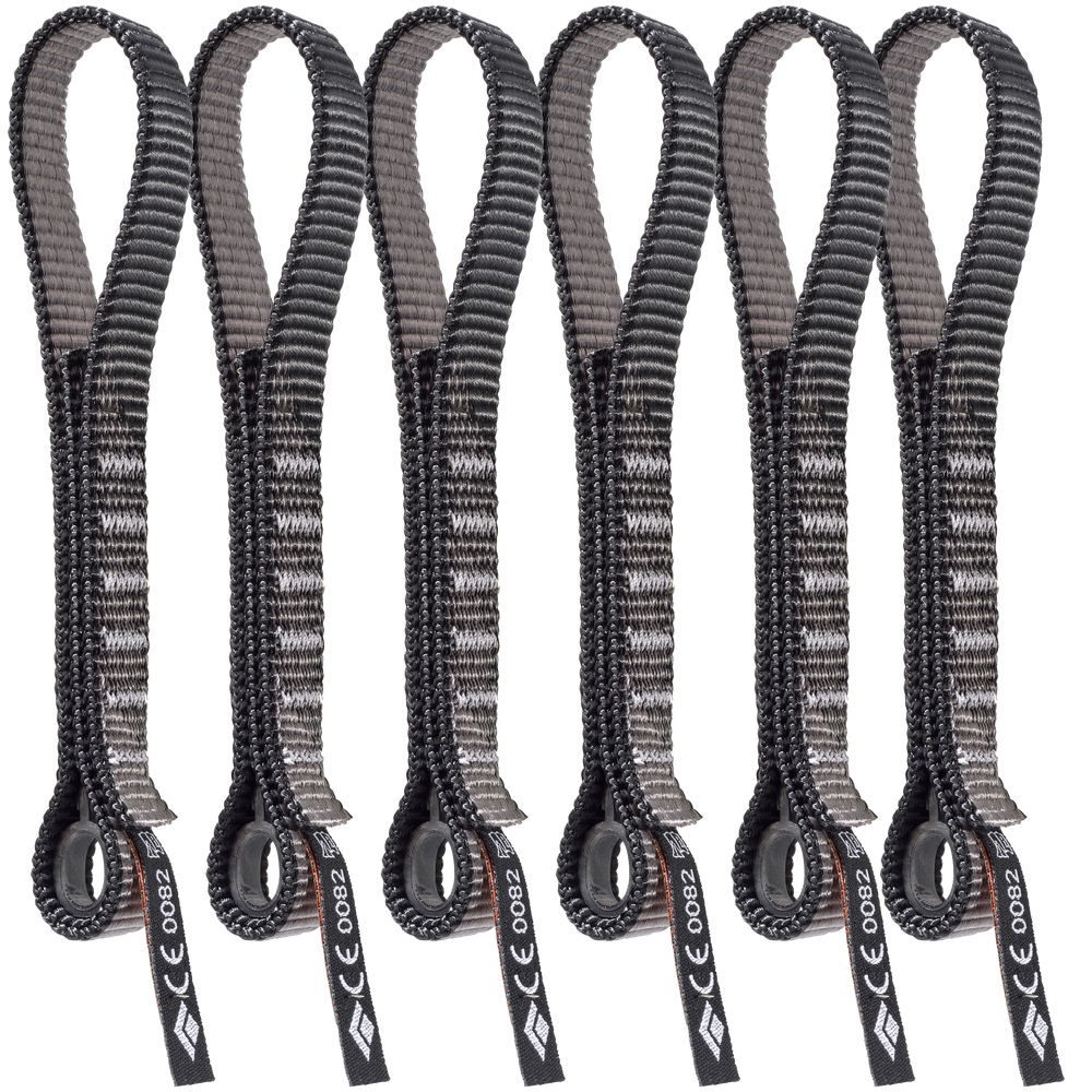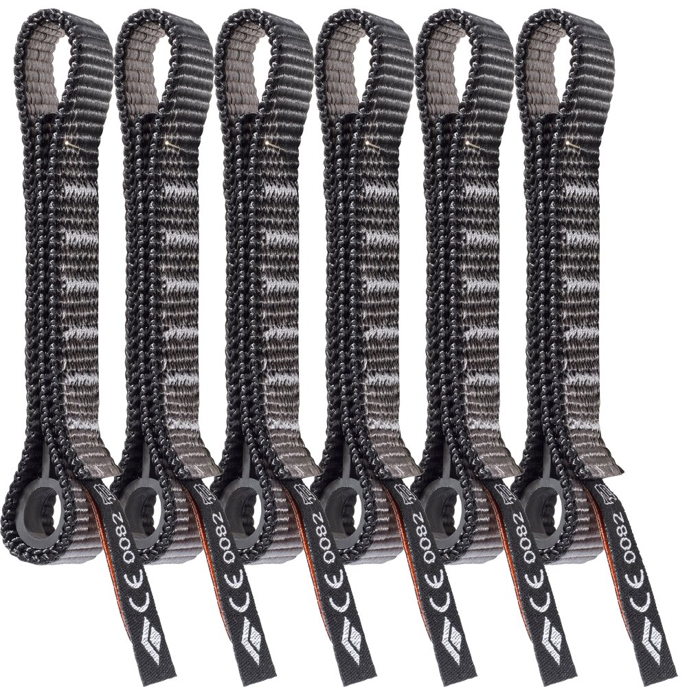 Whether a part of your everyday climbing kit or hanging from your project outside, the Black Diamond Standard Dogbone provides workhorse performance. The beefy construction resists abrasion and is easy to grab, while the rubber Straitjacket insert in the bottom keeps the bottom carabiner secured for easy clipping. 6-Pack of Standard Dogbone 12cm