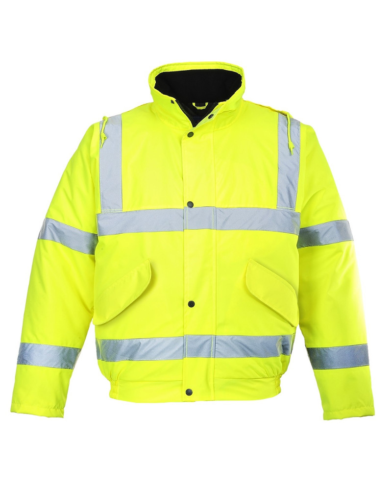 Conforms to EN 471 Class 3. PU coated, waterproof outer fabric tested to EN 343. Fully taped seams. 100% Polyester quilted lining. Internal pocket. Two lower slanted jetted pockets with flaps. Elasticated cuff. Stud fastening storm placket. Two-piece unlined hood concealed in collar. Reflective tape.