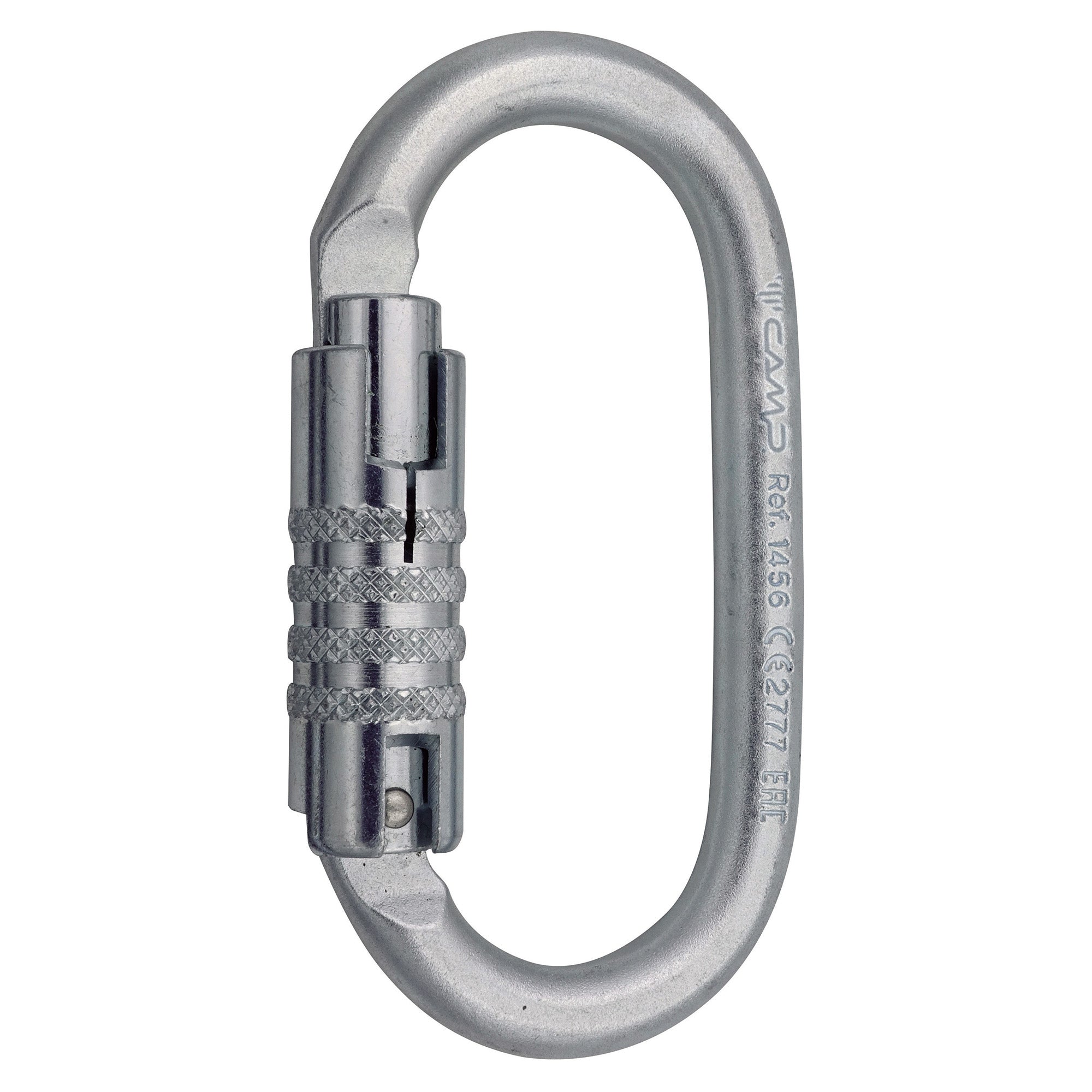 Auto-locking steel oval carabiner with a tremendous minor axis strength. Features a triple-action auto-locking gate that can be operated with one hand and a keylock nose to reduce snagging.