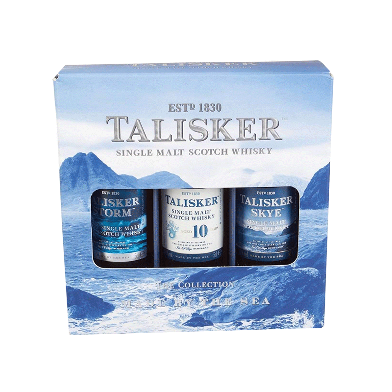 Talisker Whisky Gift Set This Talisker Gift Pack 3x5cl comes with three bottles of three of the best-selling core variants from this label, each one included in a 5cl miniature bottle. Also known as the Talisker Single Malt Whisky Gift Set, all three spirits included in this Talisker Gift Pack are categorized as single malt whiskies. More specifically, this whiskey gift set comes with the Talisker 10 Single Malt Scotch Whisky, Talisker Storm, Single Malt Scotch Whisky, and the Talisker Skye Single Malt Scotch Whisky. The Talisker Whiskey Gift Set is based on the formula and whisky making techniques practised by the Talisker Distillery, a spirits making company located in the Isle of Skye, which is now owned by one of the world’s largest alcoholic beverages companies, Diageo. The three variants included in the Talisker miniature gift set are just three of several other labels released by this brand. The Talisker Whisky Gift Set presents a sampling of three of the best whiskey expressions from Talisker. Each one is recommended for neat drinking or enjoyed on the rocks when poured over ice. Any of the three variants included in the Talisker Whisky miniature gift set may also be consumed as the whisky-base of any of the most well-loved cocktails of all time.