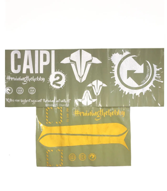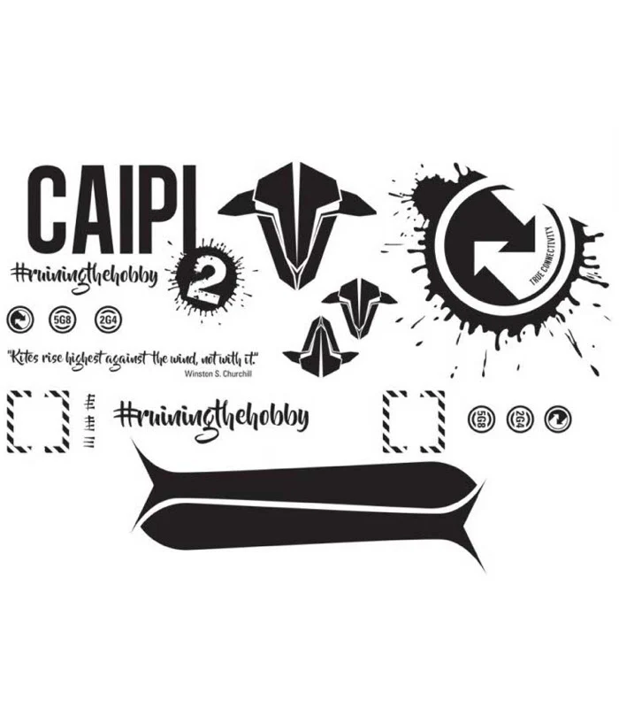 Pimp out your Caipirinha II with this decal set. The stickers are single-color peel off vinyl and are designed by Albert Kravcov, manufactured by TBS. The vinyl is slightly reflective and sticks nicely to the EPP skin of the TBS Caipirinha II.