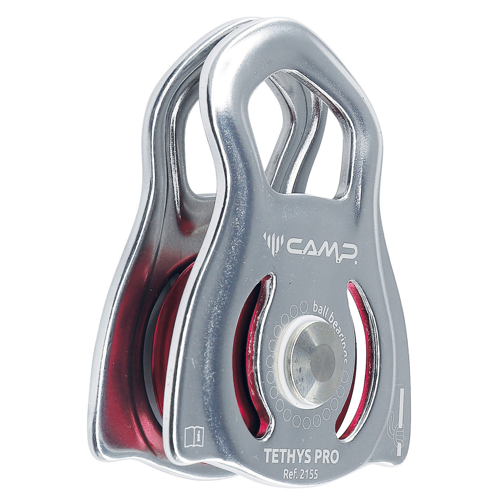 The Tethys Pro is a lightweight, high-efficiency, compact pulley designed to carry seamlessly on a harness and attach to ropes with ease. It features rotating side plates and a large attachment point that accommodates two carbines. The Tethys Pro uses the same design as the Tethys, but features sealed ball bearings for higher efficiency and intensive use at higher speeds. Prusik knots can be installed on either side (aramid cord suggested) making it an ideal pulley for rigging a hauling system on route or managing crevasse rescues.