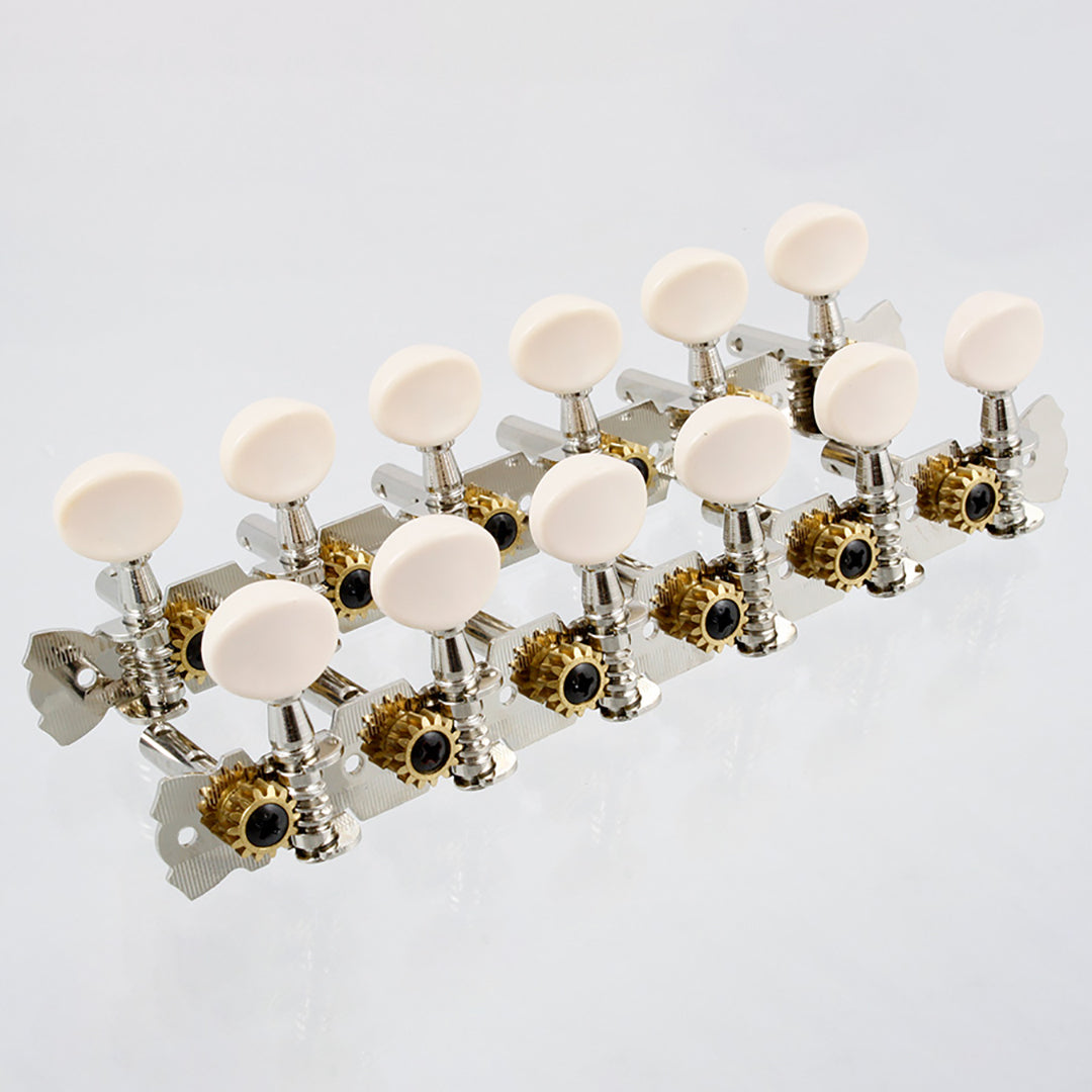 12-string tuning keys, 6 x 6, on a strip, 14:1, 1″ post spacing, Nickel.