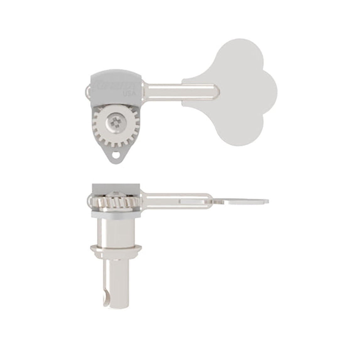 Any sore shouldered bassist can tell you that fighting “neck dive” from a poorly balanced instrument is akin to slow torture. Our UltraliteĀ® bass tuning machines are designed and manufactured to lighten up the load while improving ruggedness and accuracy. Spend more time on the bass-not at the chiropractor. Allparts #TK-7755.Ā
