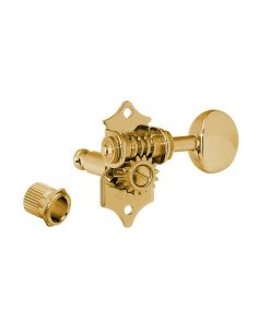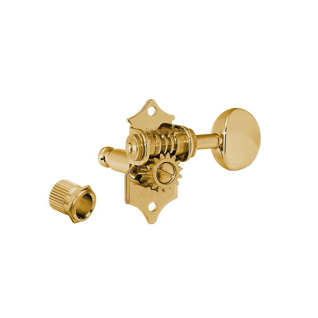 Gotoh SE700 open gear 3 x 3, oval buttons, with hardware, 15:1, 15/16″ screw spacing. Allparts #TK-7806