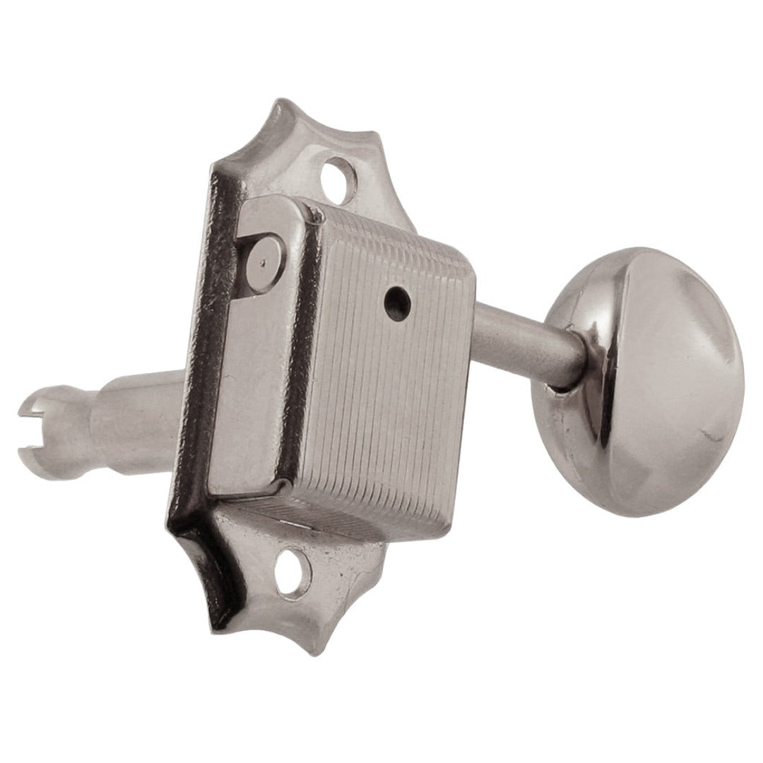 Gotoh SD90 3×3 tuning keys, vintage style, split safety shaft, metal oval buttons, 15:1. Allparts #TK-7875.
