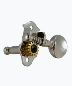 Beautiful machine heads with the classic round button, the 98 Series provides smooth, sure tuning. Heavily plated finish with a striking contrast to the brass gears. Screws and bushing included. 14:1 gear ratio.