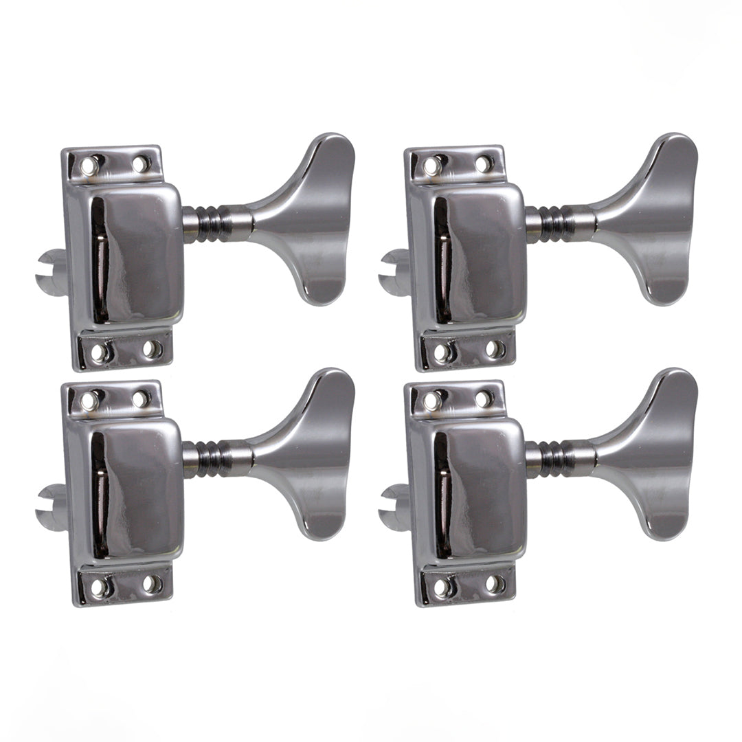 Import bass keys, 4-in-line, with Chrome cover, with hardware, 20:1. Allparts #TK-7947-010.