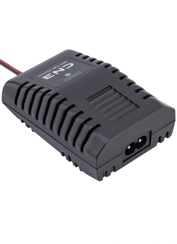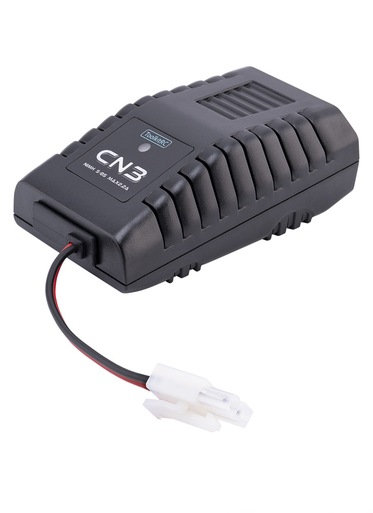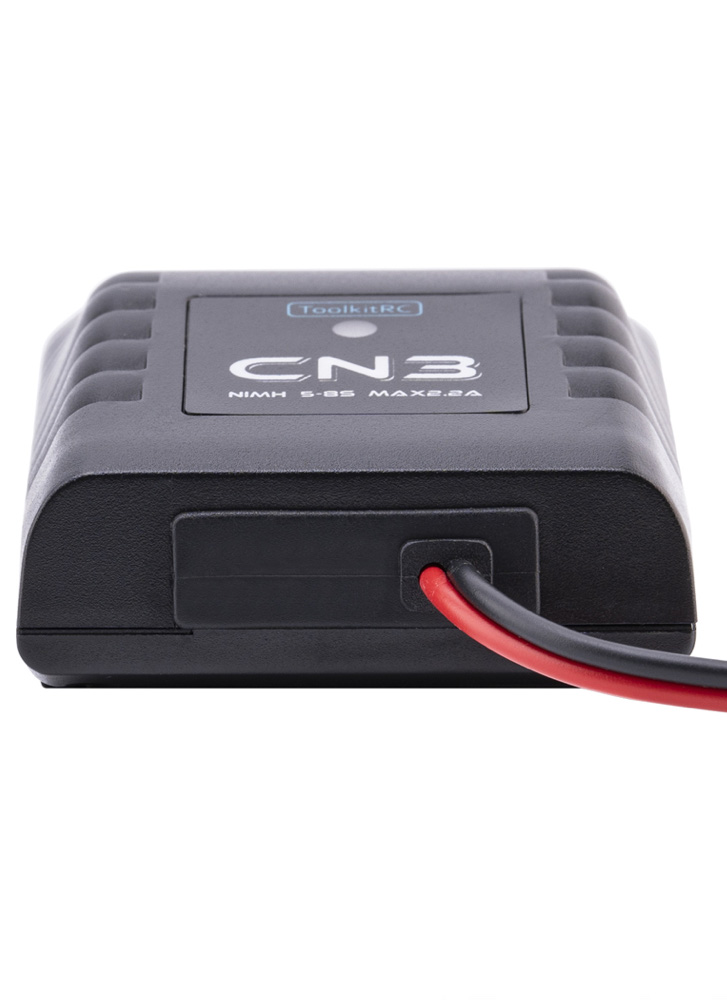 The CN3 is a compact charger for NiMH batteries (5-8S). It features a built-in AC power supply, rated for 25W, 20W output up to 2.2amps. With the built-in delta peak detection, the CN3 ensures that your batteries really reach their full capacity when charging. With an intuitive user interface and a LED display, the CN3 is a capable, bring-anywhere charger!