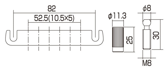 Gotoh 510FA stop tailpiece, lightweight aluminum, with hardware, 3-1/4″ stud spacing.