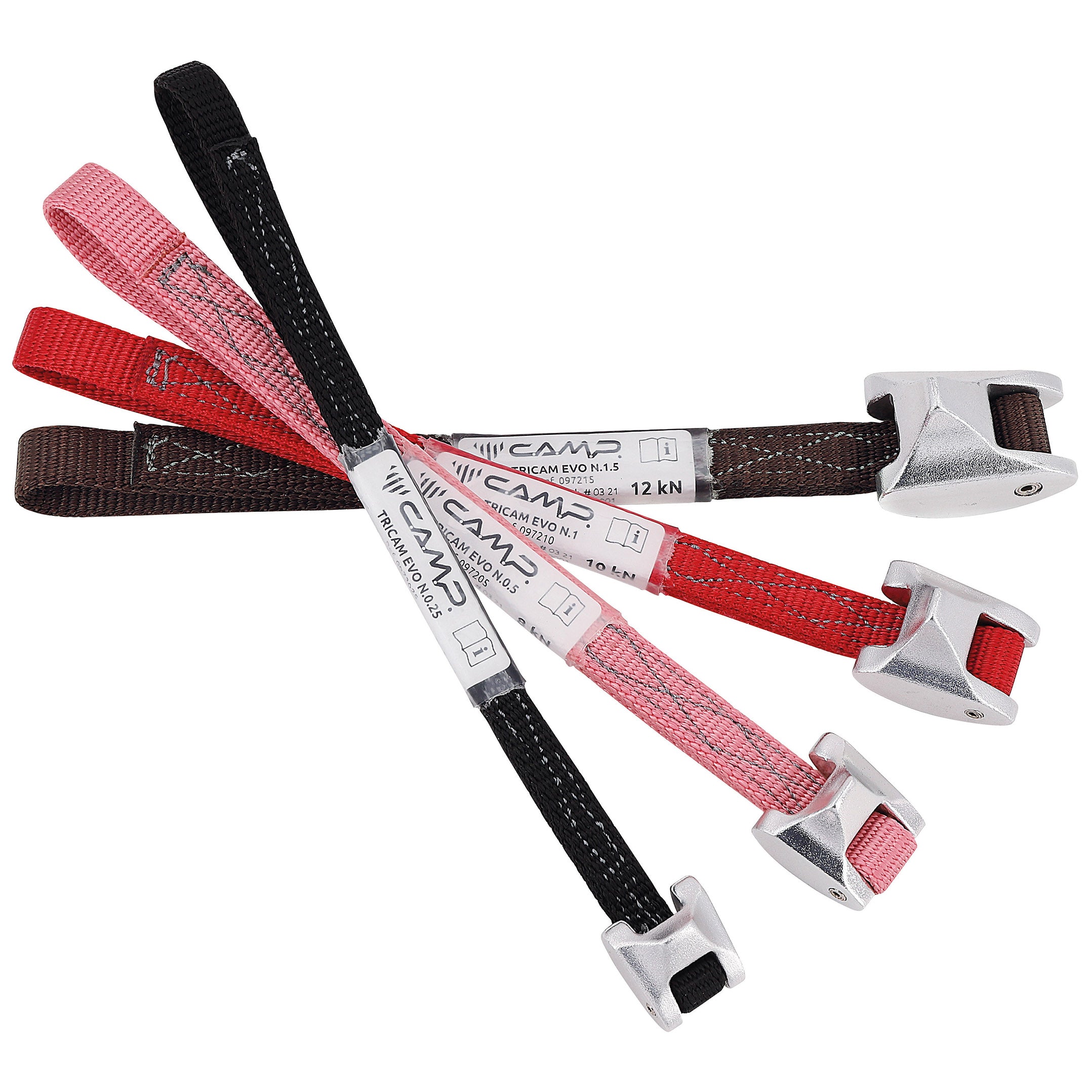The Tricam Evo also features the stiffened slings where we carry the inner band of webbing further towards the head using a stitch pattern to create a naturally stiffer sling that makes one-handed placements easier, but still engages the cam in active mode and will even increase durability over sharp edges with the additional layer of material.