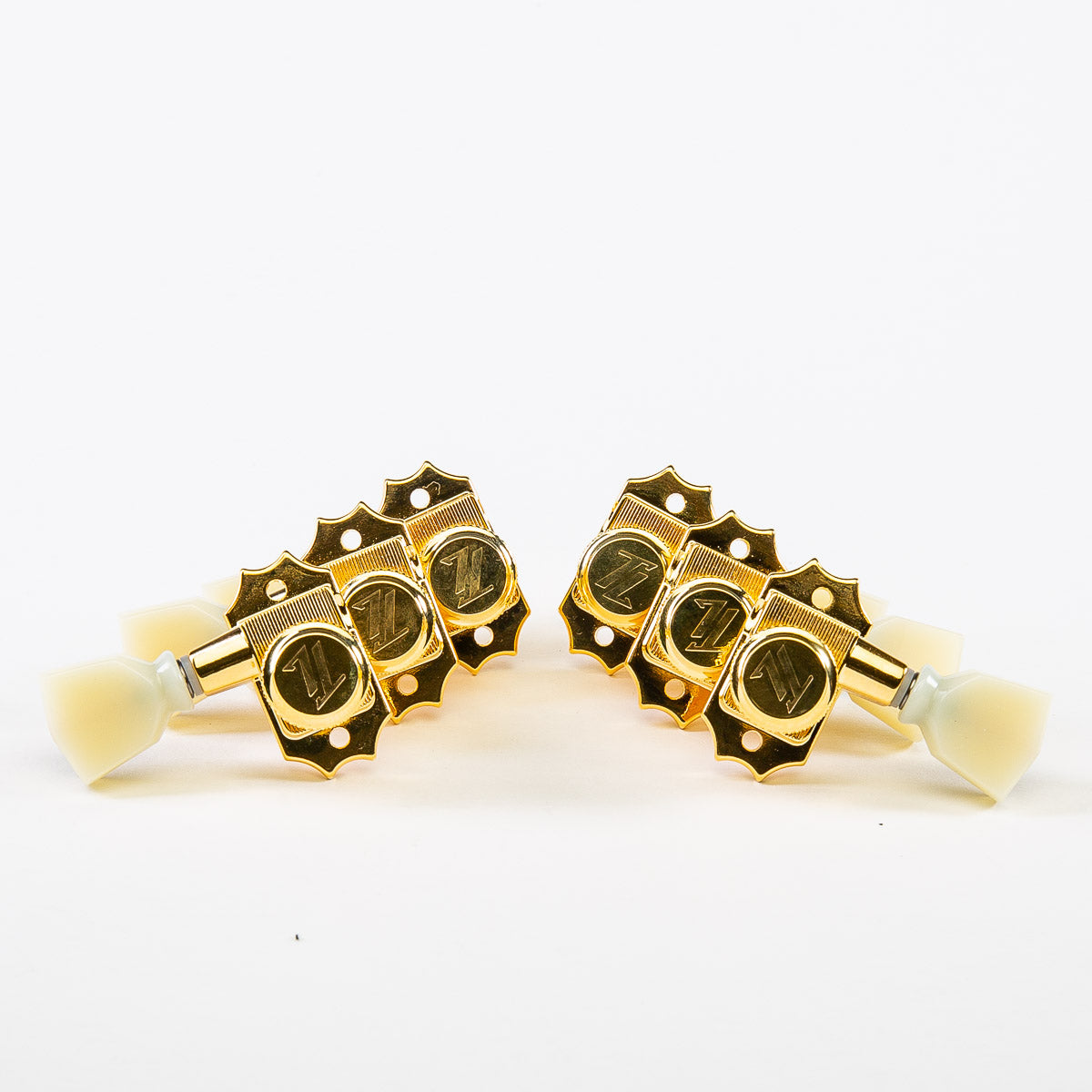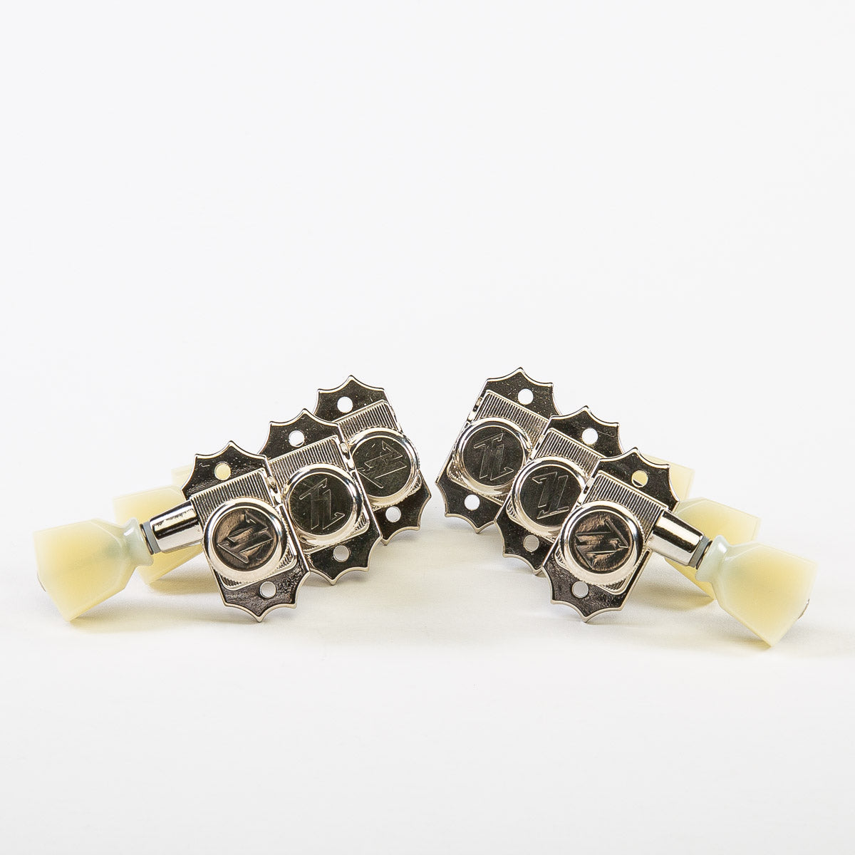 Combining vintage aesthetics with modern manufacturing techniques, our True Lok Vin-Mod series tuning keys offer fans of vintage guitars ultimate tuning stability while maintaining a classic, traditional appearance inspired by tuning keys used on vintage guitars. Combined with its string locking mechanism and 18:1 gear ratio, a tension washer is installed between the string post and base plate to eliminate “post wiggle,” making these keys accurate and ultra stable. Players will notice the silky-smooth feel employed by internal nylon washers that cushion the key’s gear shaft. Lastly, string changes are made easy by simply pulling the string through the tuner post and locking it in place before tuning to pitch. True Lok Vin-Mod keys are the perfect solution for those wanting to preserve the classic look of vintage instruments with the accuracy and stability of a modern locking tuning key!