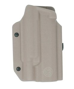 Due to the increased angle of the new Helix-G, additional pressure was felt from the built-in Concealment Wedge. To reduce discomfort and allow the user to wear the holster in either appendix or strong-side, the wedge was removed and the GBRS Group logo was lasered in its place. A second DCC Mod4 clip was also added to the front of the holster to increase stability across the horizontal axis of the waistline.