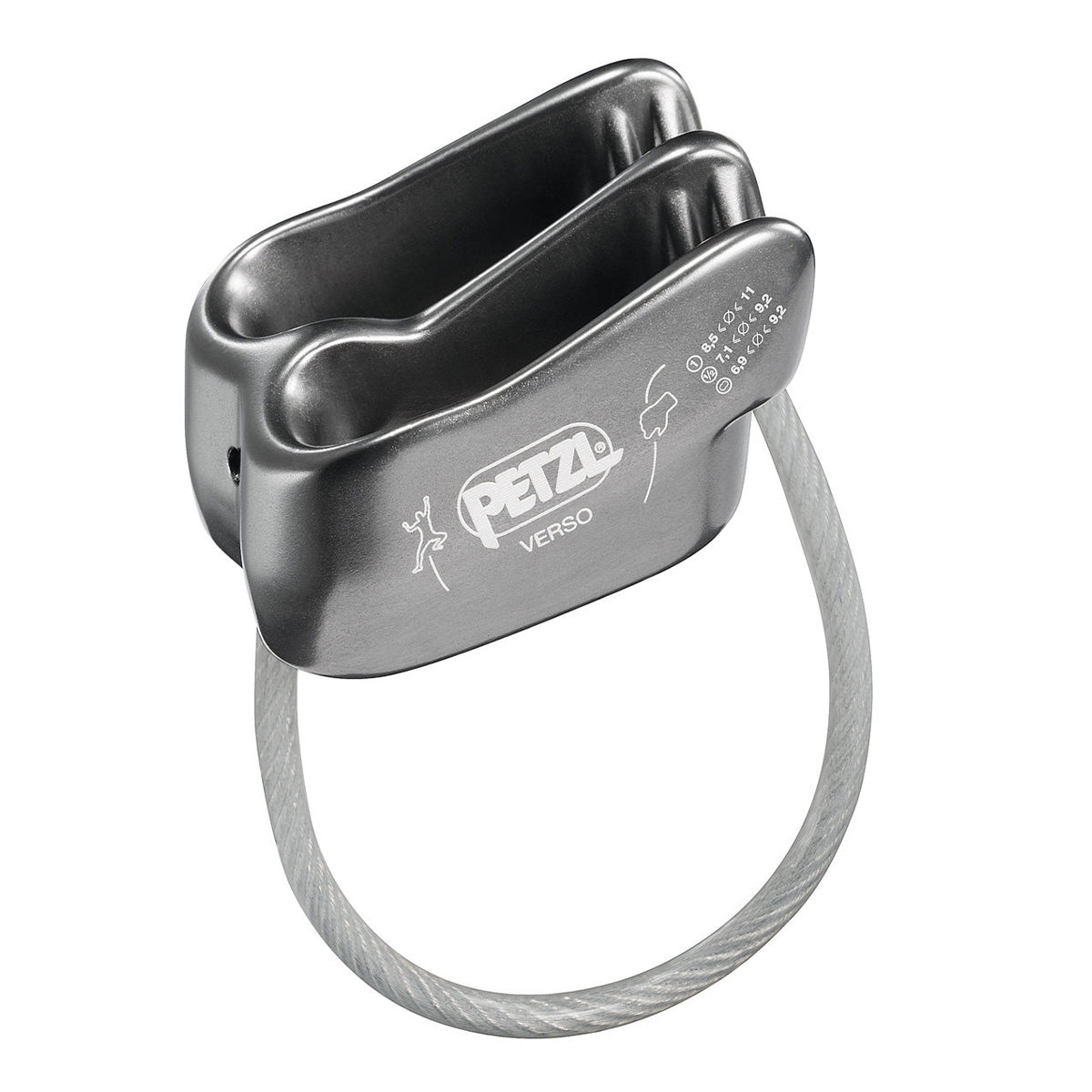 The lightest in the Petzl range! VERSO is an easy-to-use belay device. With it, you can belay a climber or rappel. The specific design allows the rope to glide smoothly through the device and reduces wear. It is compatible with most rope diameters: single 8.5 to 10.5 mm, half 7.1 to 9.2 mm, and twin 6.9 to 9.2 mm.