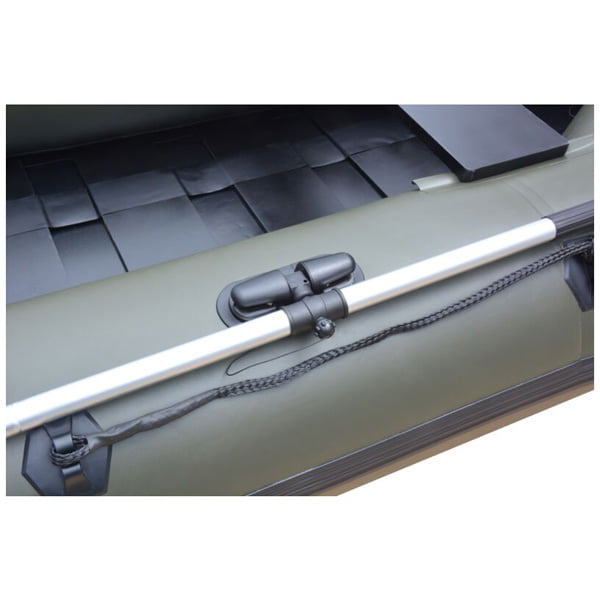 Manufactured from 750g 1100 denier polyester with a 3-year limited warranty on seams and cloth. Supplied with Collapsible Oars, Repair Kit, Foot Pump and an Oversized Carry Bag.