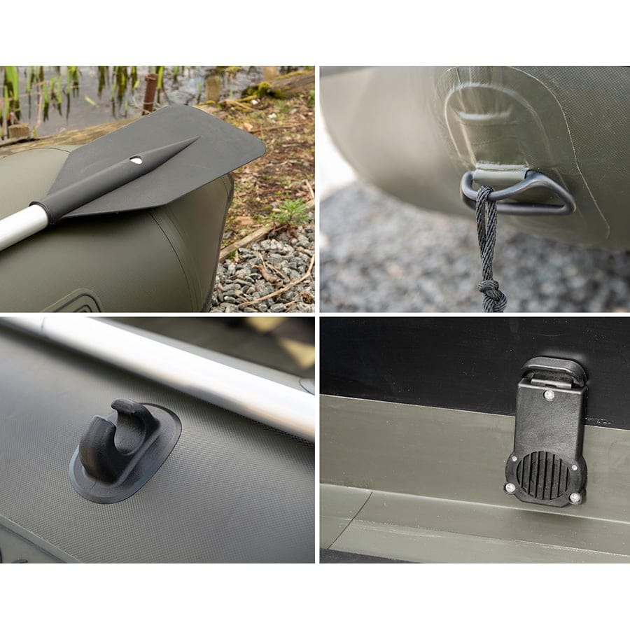 A 2.5m boat, perfect for placing rigs, baiting up and landing fish. Lightweight boat for easy transport. 0.7mm hard-wearing fabric. Green.