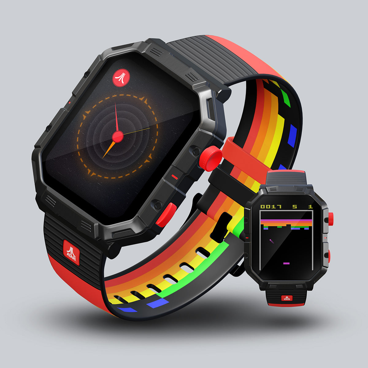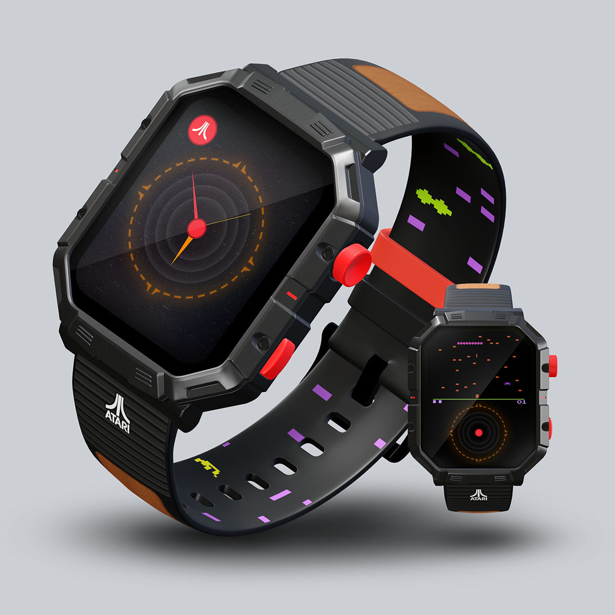 Show your love of retro gaming, right on your wrist. This interactive smartwatch was custom created for Atari 2600 fans. Play classic games on a timepiece inspired by the look and feel of the 2600. Every watch includes two interchangeable bands with graphics on both sides. Those who pre-order from Atari.com will also receive a third, exclusive, BONUS watch band, inspired by Missile Command.