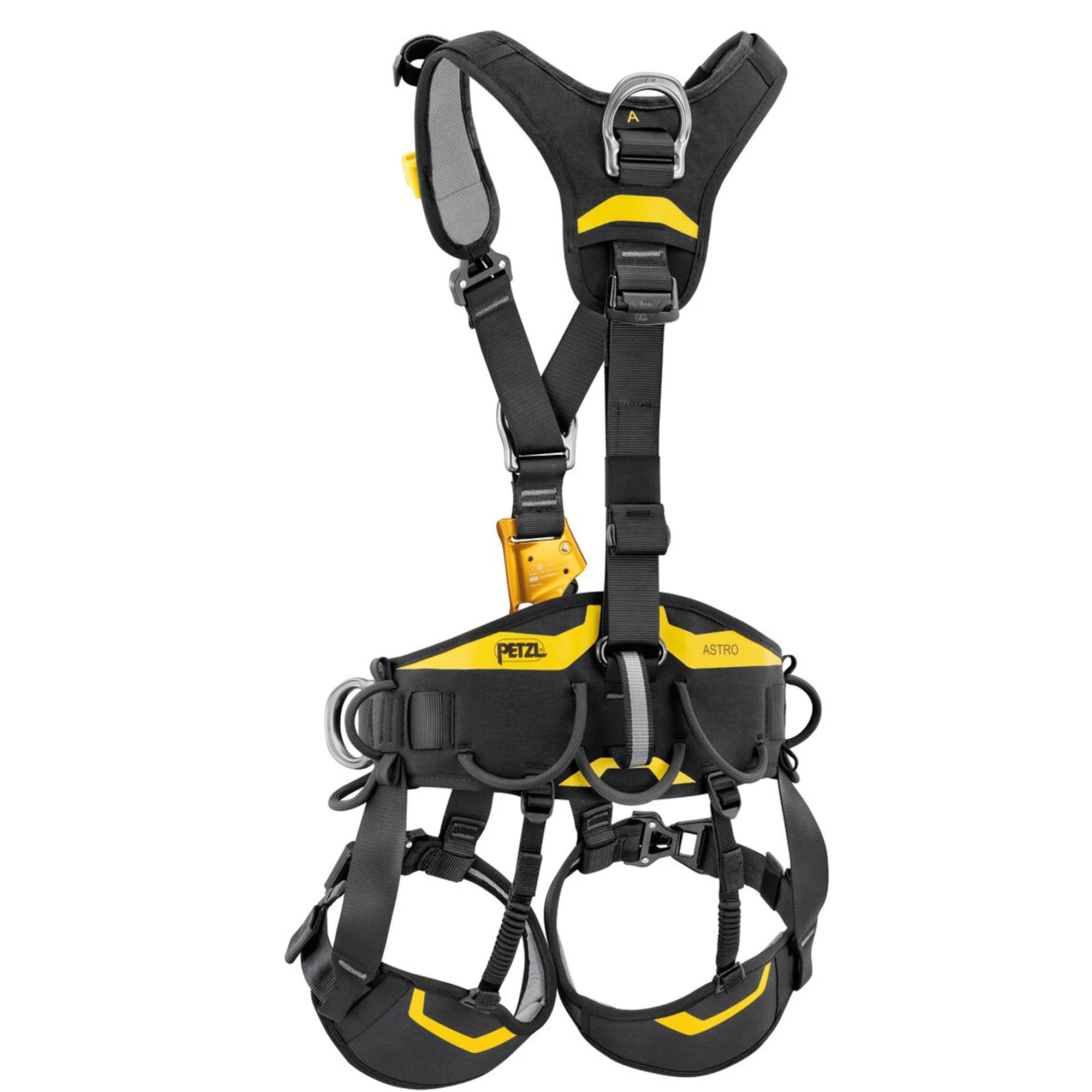 The Astro harness is designed for rope access technicians. Its design is specific to progression and rope ascent. The 3D foam padding and semi-rigid waistbelt and leg loop construction provide comfort throughout the workday. The gated ventral attachment point allows the user to efficiently install the necessary equipment for progression. The integrated rope clamp improves efficiency for rope ascent. The waistbelt features metal side attachment points, equipment loops, and tool holder slots, allowing the user to organize and carry all the necessary equipment for a day of work. Doubleback self-locking buckles and Fast opening buckles make donning and adjusting the harness simple and convenient, even while wearing gloves.